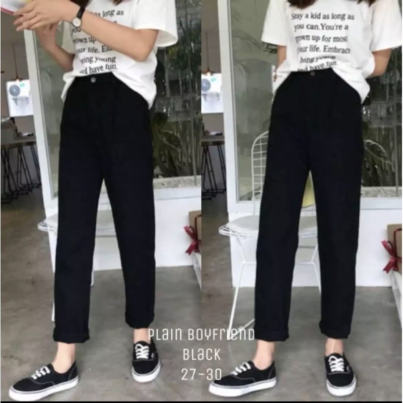Plain Boyfriend Hitam 27-40 / Celana Boyfriend Jeans Wanita Hitam / Boyfriend Jumbo Hitam / PLAINBF