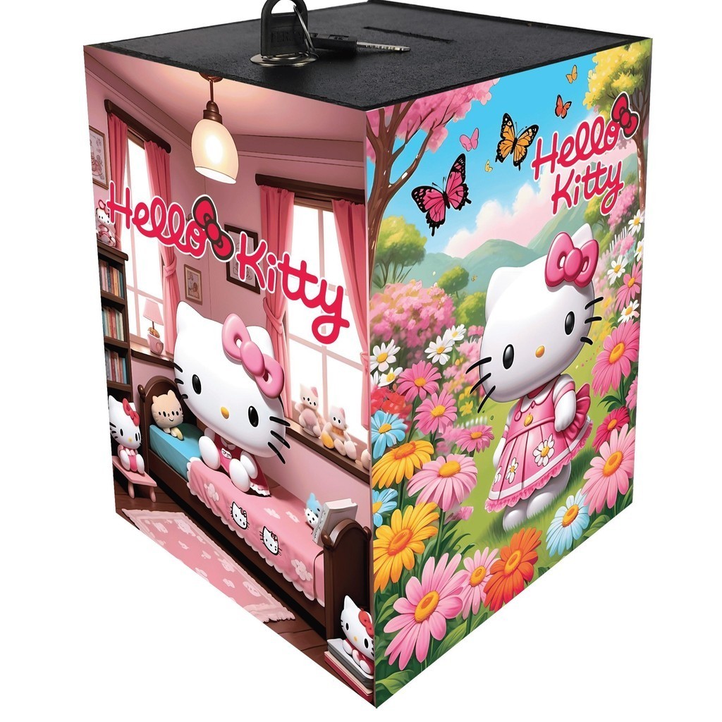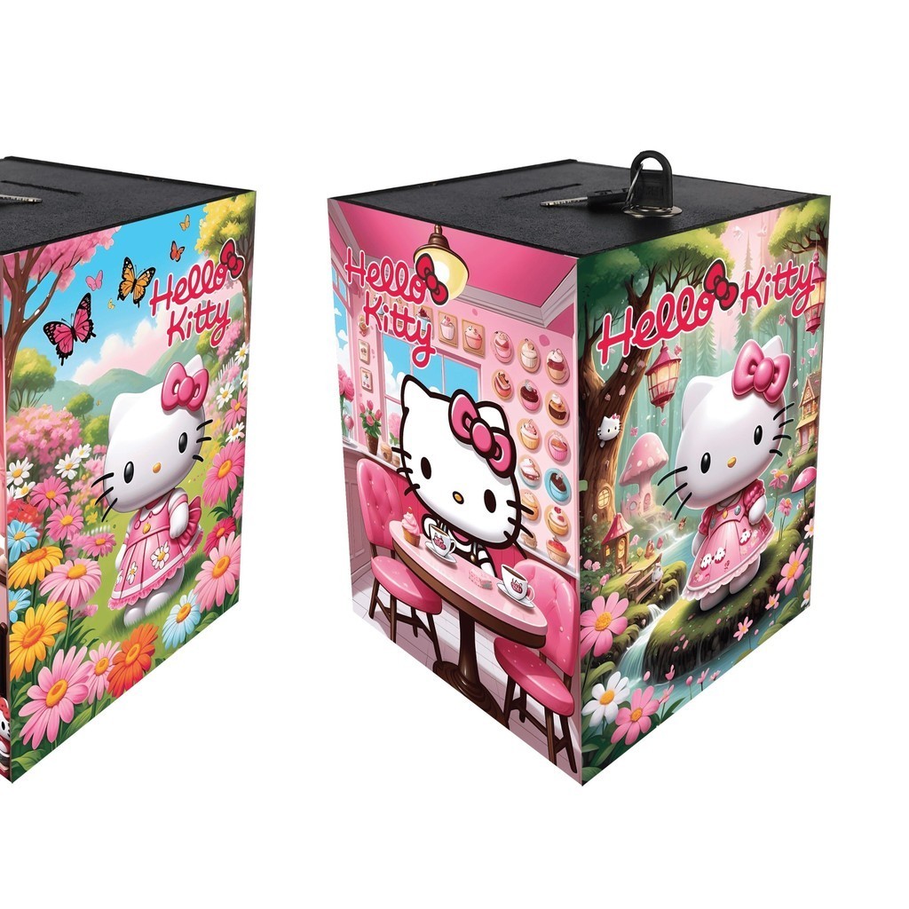 Celengan Anak Lucu dan Unik Celengan Kotak Kayu Buka Tutup Anak Karakter Ukuran 15x20 cm dengan Kunci Biasa - Tabungan anak
