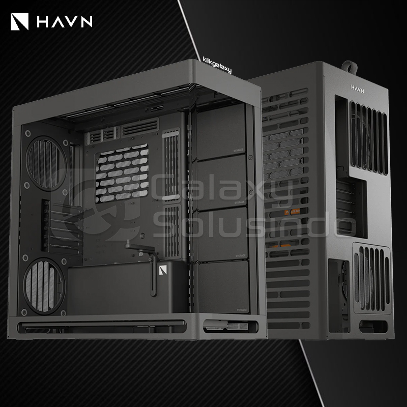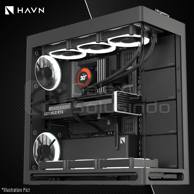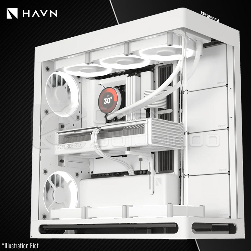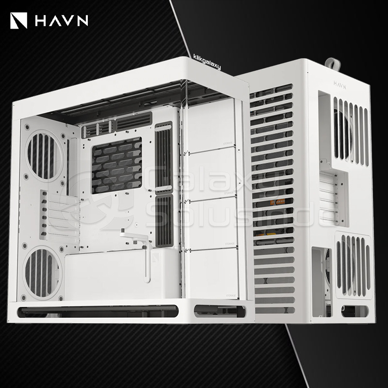 HAVN HS 420 Dual Chamber Premium Mid-Tower E-ATX Tempered Glass Gaming Case - Black White