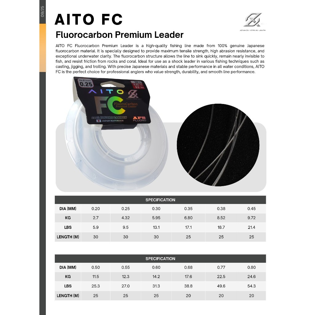 AXZ AITO FC Fluorocarbon Leader – Senar Leader Fluorocarbon Premium Jepang, Kuat & Tahan Gesek