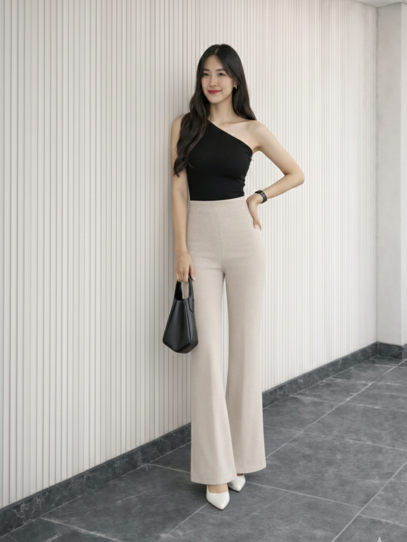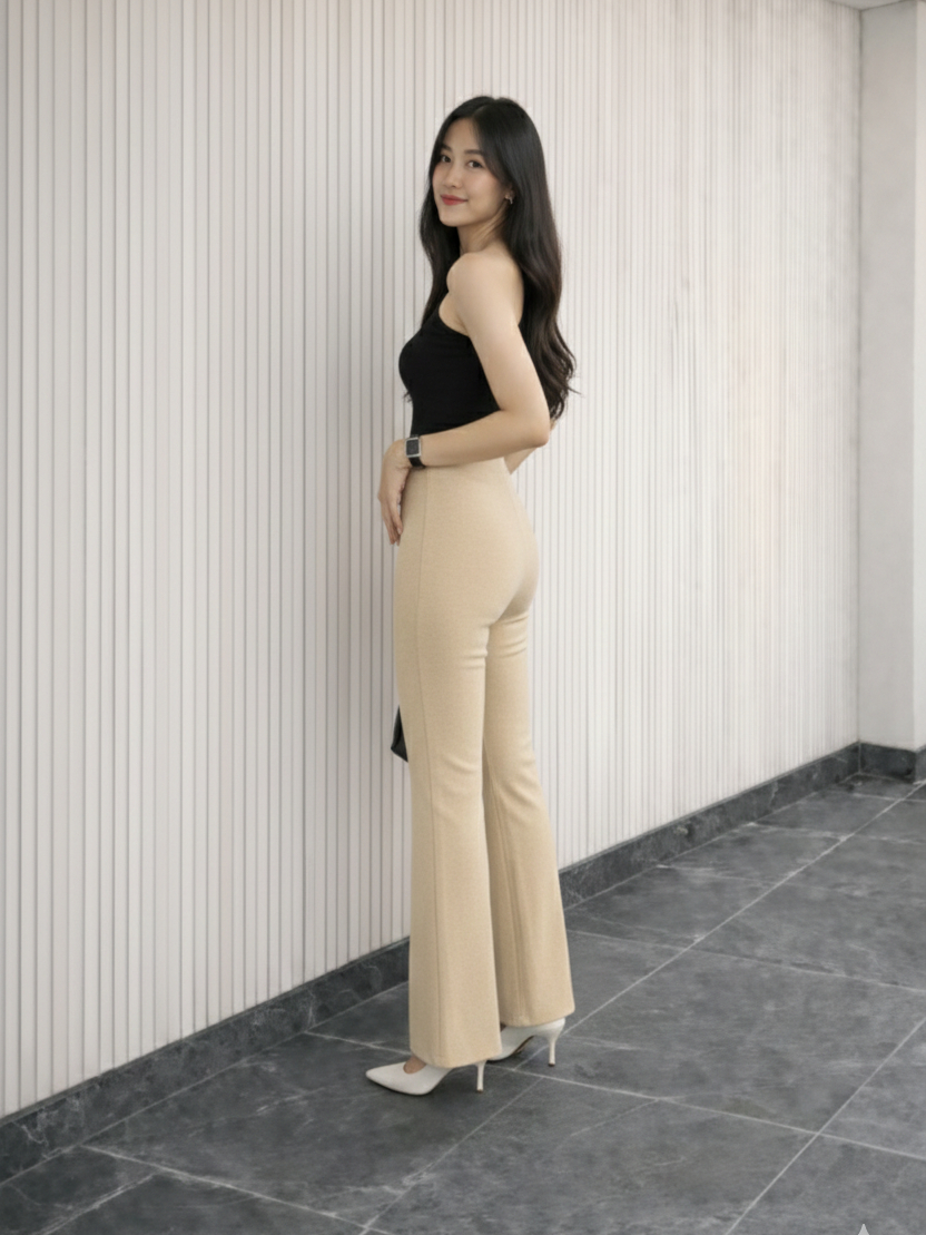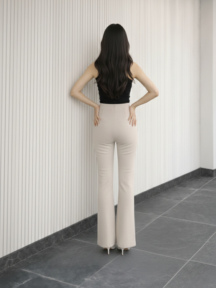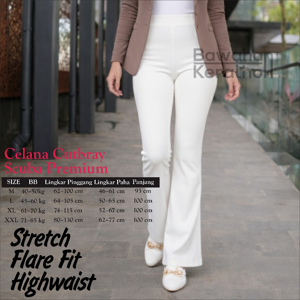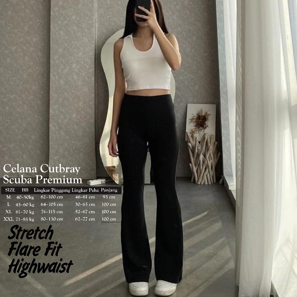 Flare Pants Highwaist Celana Scuba Cutbray Tebal - Celana Kerja Wanita Kantor Bahan Adem Anti Kusut