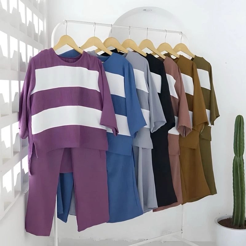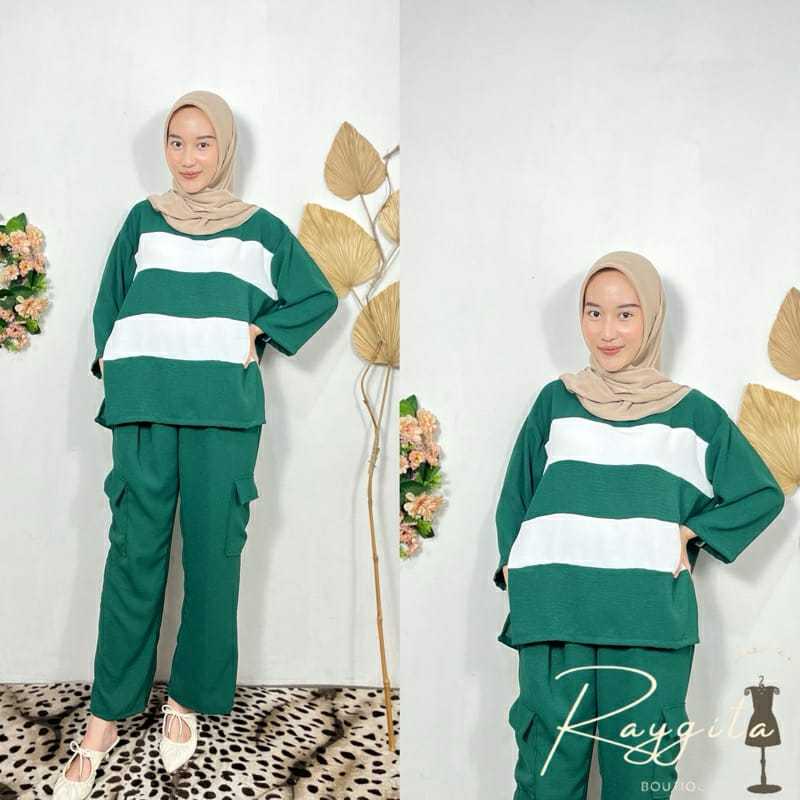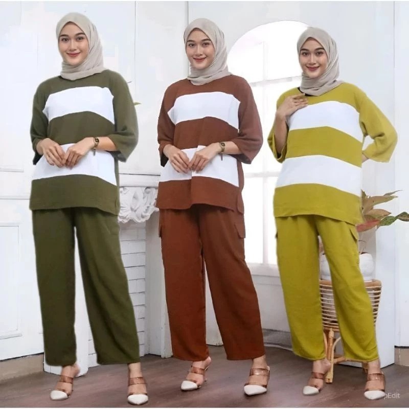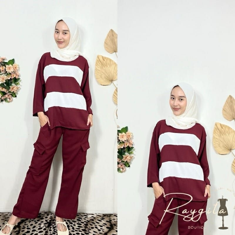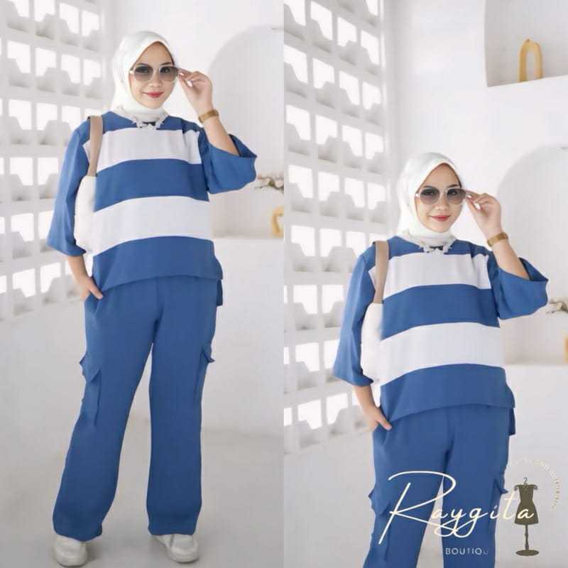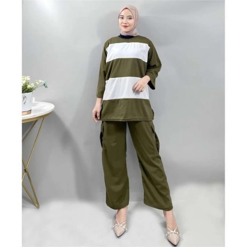 One Set Blaster Setelan Wanita Kekinian Fashion Muslimah Celana Cargo Baju Atasan Blaster Jumbo