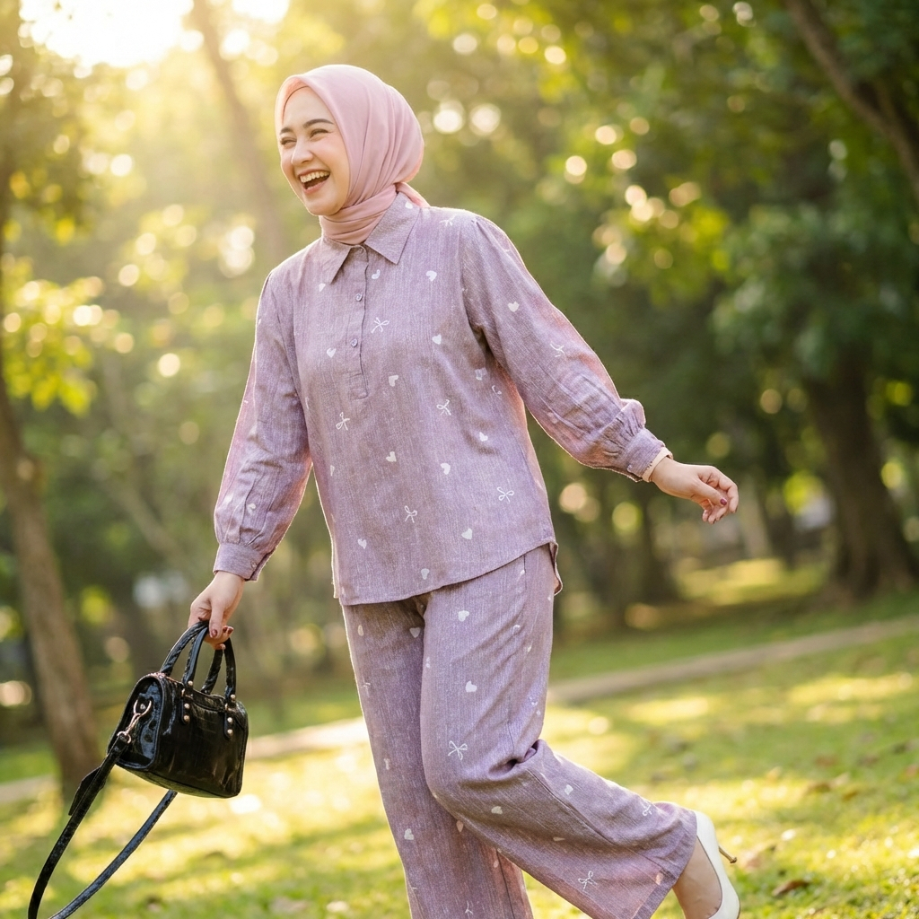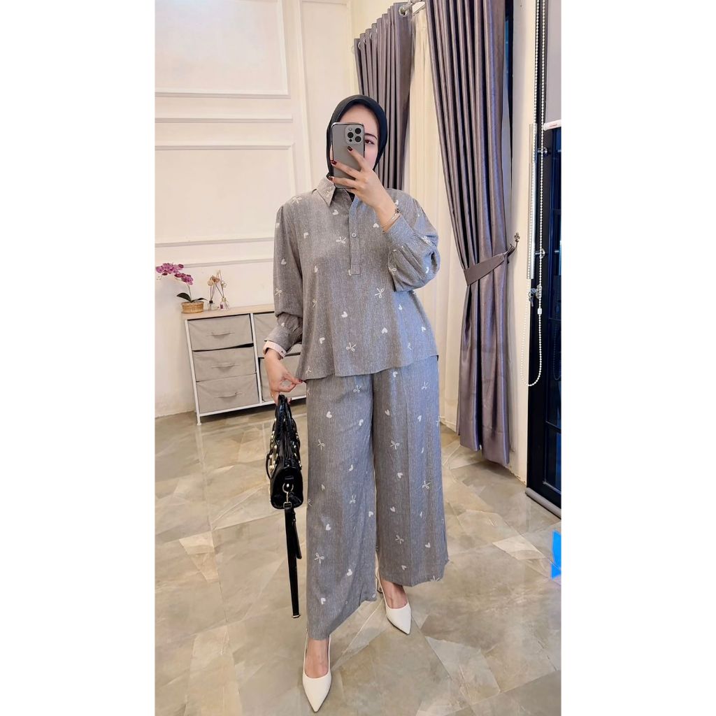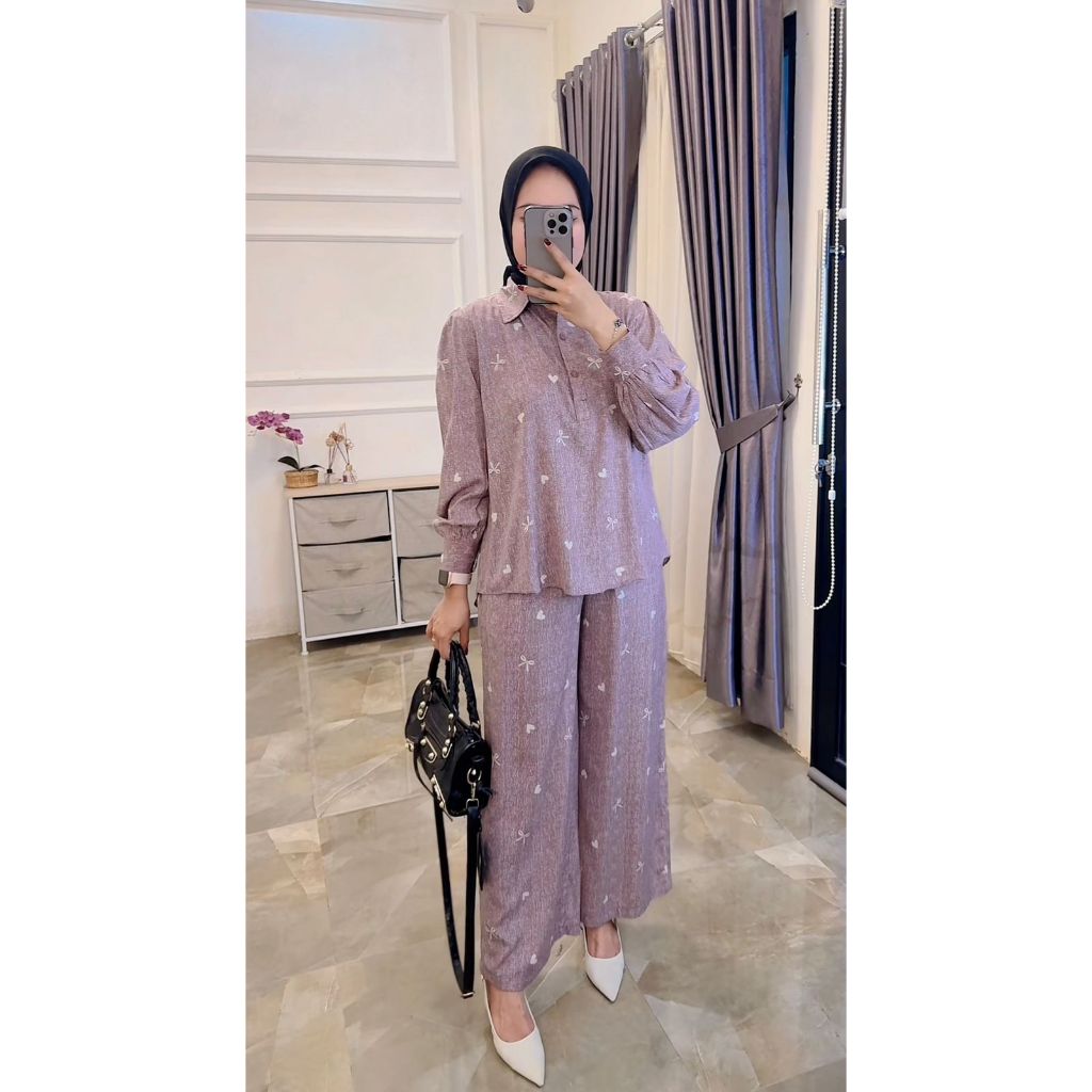 Setelan Wanita | Setelan Kulot | Katun Premium | Motif Kekinian | Setelan Celana Katun Lembut Print Motif Love & Pita | Bunca - Lily