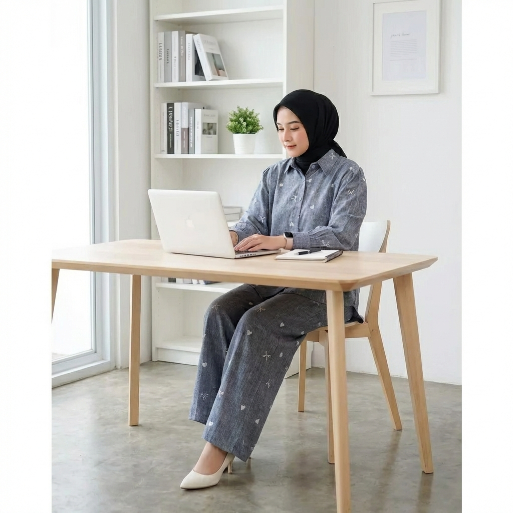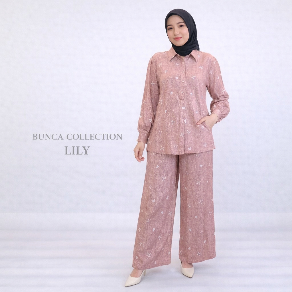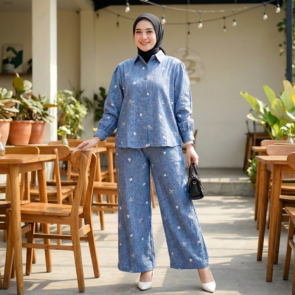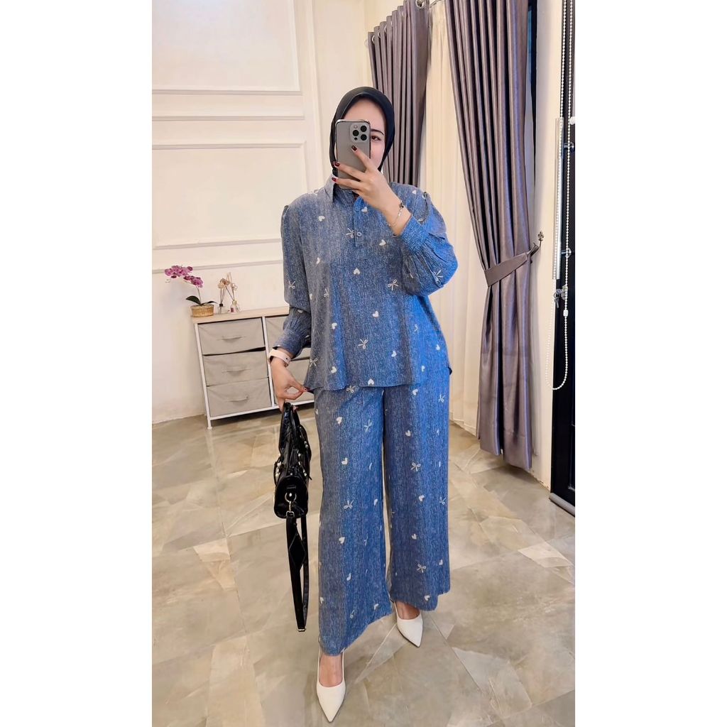 Setelan Wanita | Setelan Kulot | Katun Premium | Motif Kekinian | Setelan Celana Katun Lembut Print Motif Love & Pita | Bunca - Lily