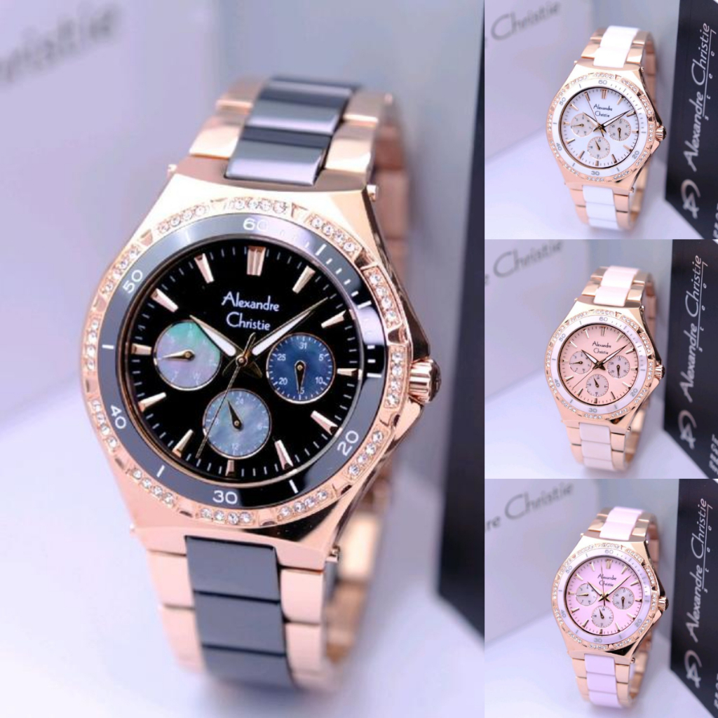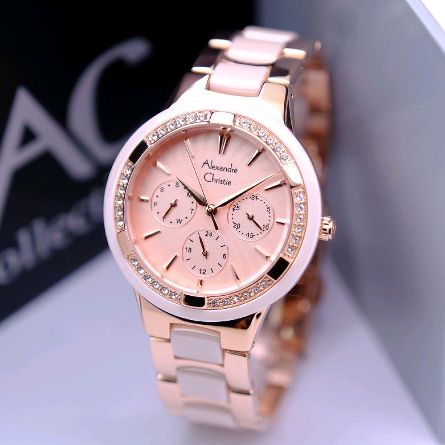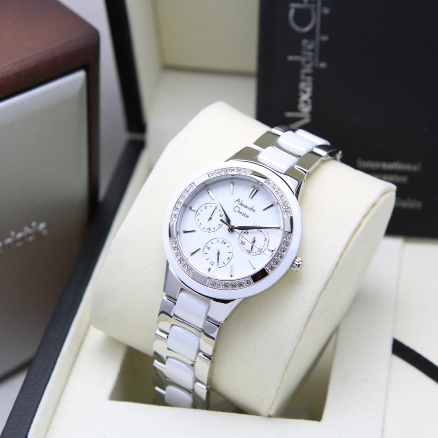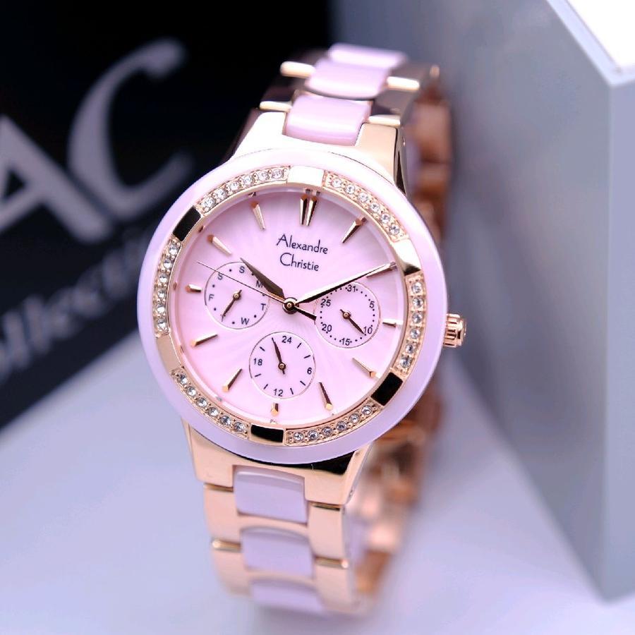 ORIGINAL Jam Tangan Wanita Alexandre Christie AC 2294 / AC2294 / 2294 / AC 2299 / AC2299 / 2299 Garansi Resmi 1 Tahun, Stainless Kombinasi Keramik