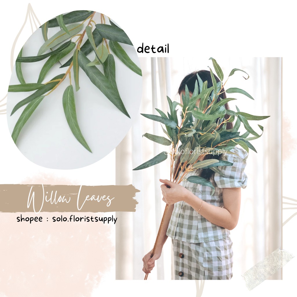 Daun Artifisial Willow Leaves daun palsu willow Dekorasi outdoor indoor daun plastic properti foto Daun Artifisial Willow Leaves Dekorasi Pelaminan Hantaran Daun Mangga / Daun Cabang 5 Dekorasi / Daun Plastik / Daun Artificial