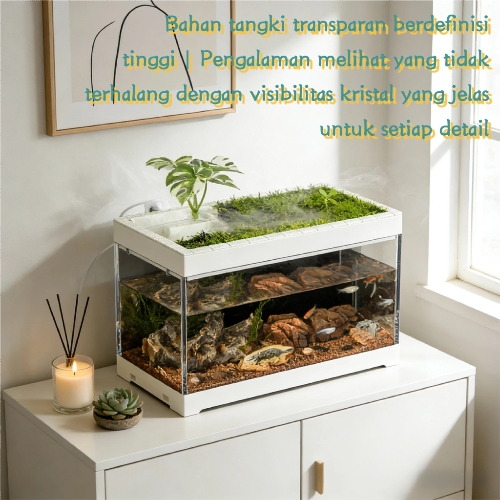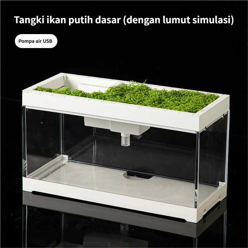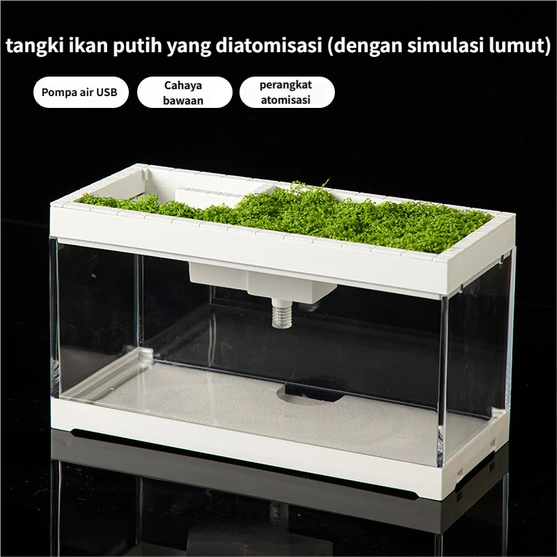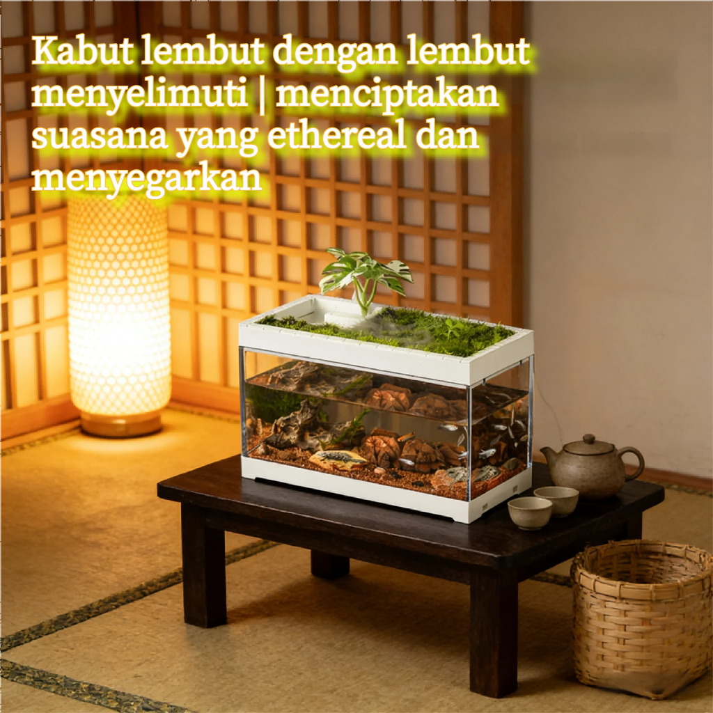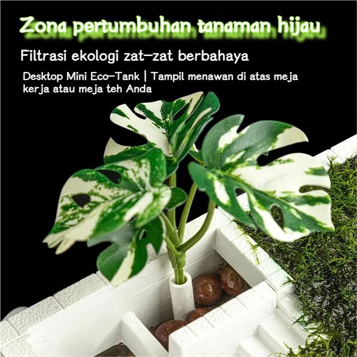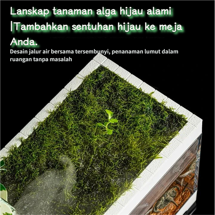 PAPAPET Akuarium Simbiosis Lumut: Pemandangan Miniatur Meja Kompak Perawatan Mudah dengan Sirkulasi Tanpa Air dan Sistem Filtrasi Terintegrasi Pemandangan Ekologis Akuarium All-in-One