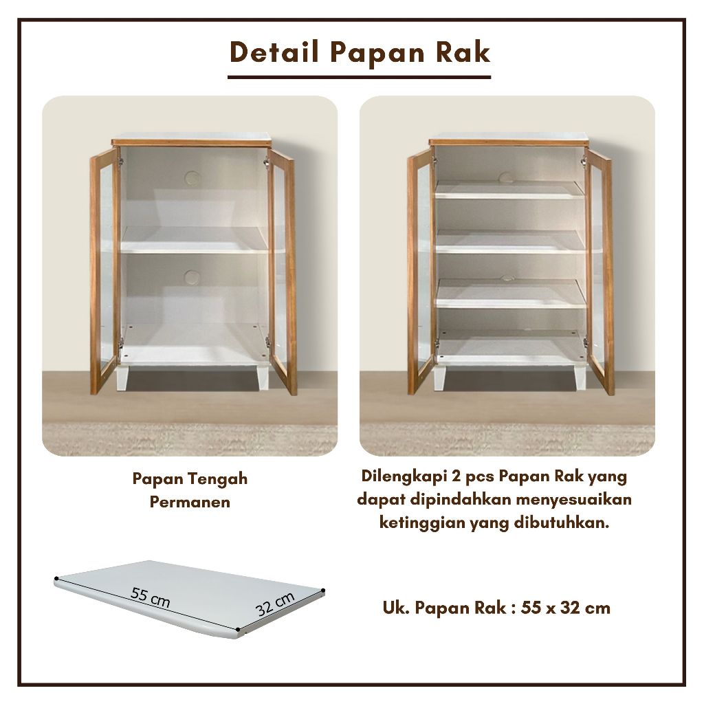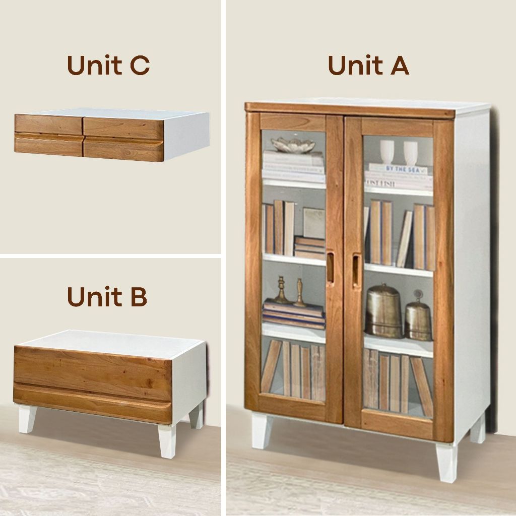 Toraya - Transform Cabinet Unit A (Putih Natural): Lemari Buku/ Bufet Kaca/ Lemari Tumbuh