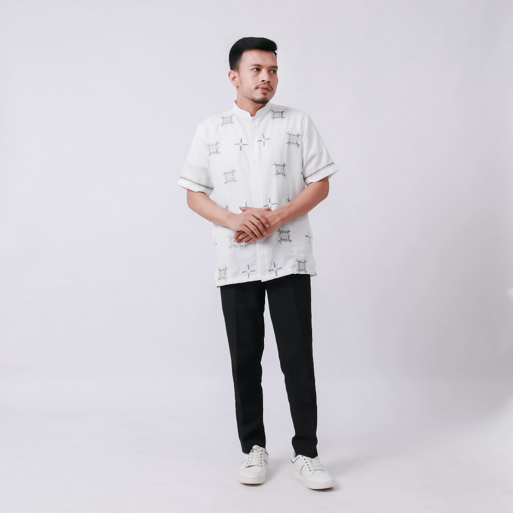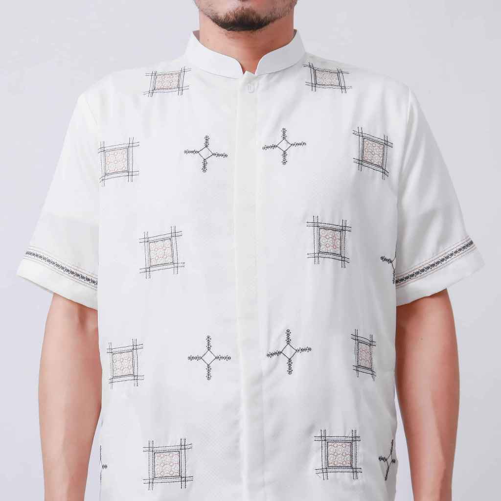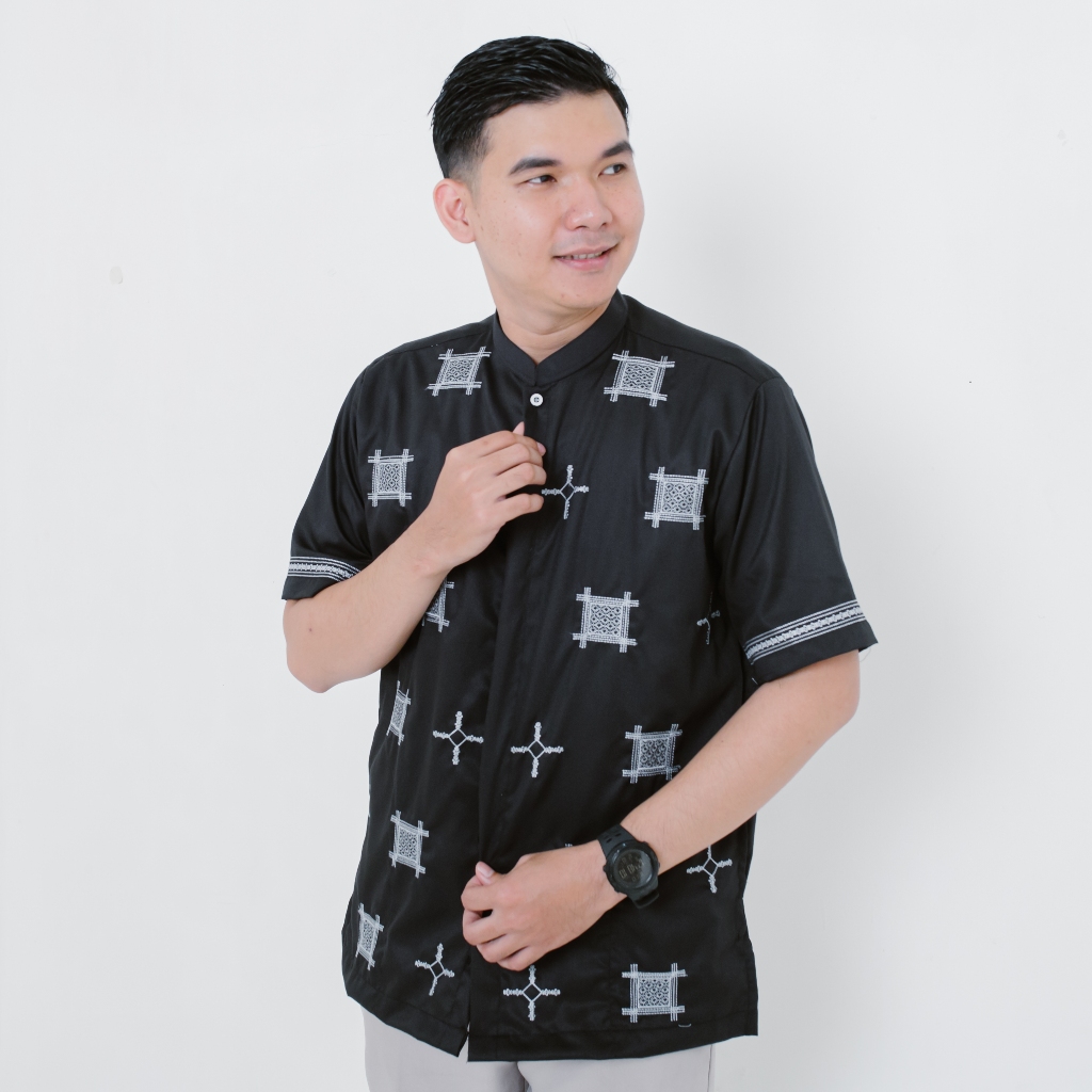 Baju Koko Motif Bordir Tabur Asli Terbaru Tangan Pendek Pakaian Muslim Pria Dewasa