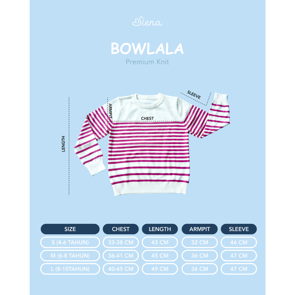 BAJU ANAK HARIAN ADEM NYAMAN MOTIF GARIS SALUR BOWLALA PREMIUM KNIT - SIENA KIDS