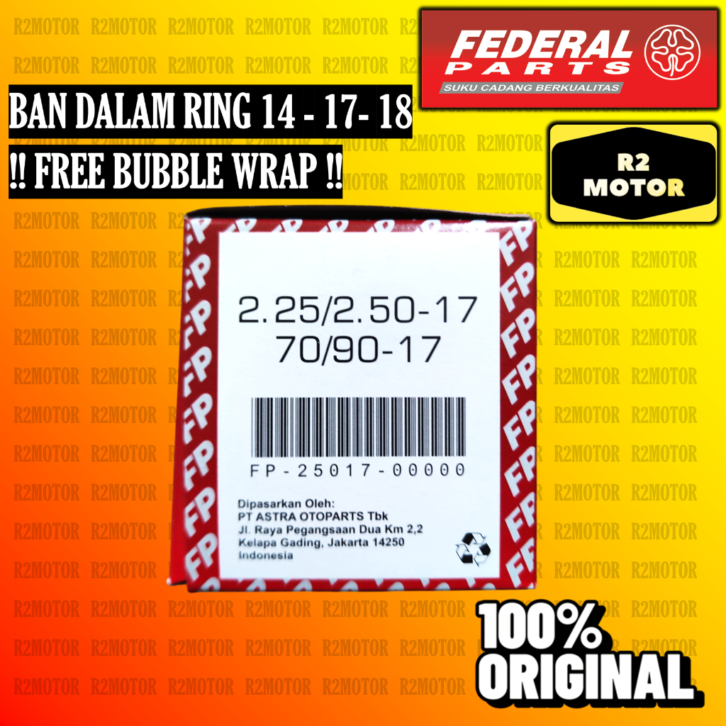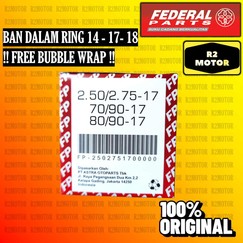 FEDERAL BAN DALAM RING 14 17 18 60/80 70/90 80/80 80/90 90/80 90/90 100/80 120/70 200/225 250/275 275/300 300/325 ASTRA FP TUBE