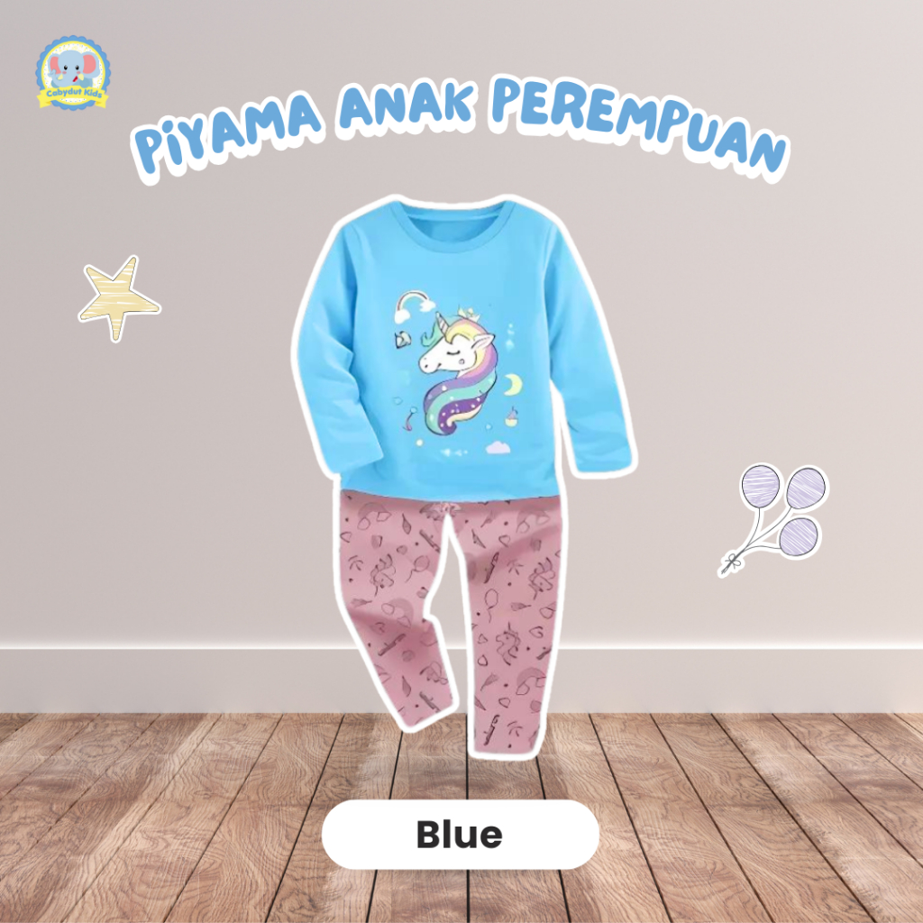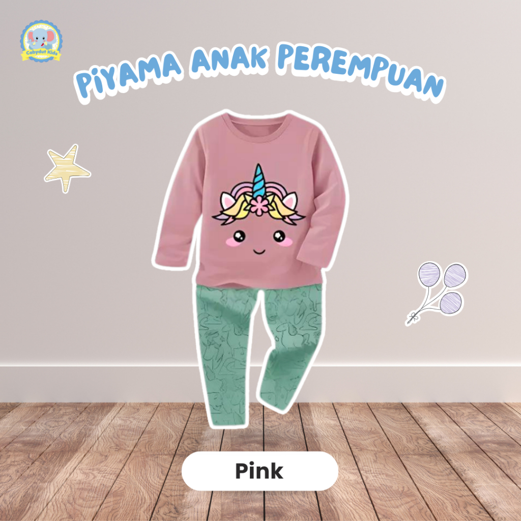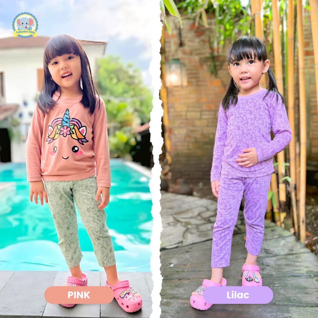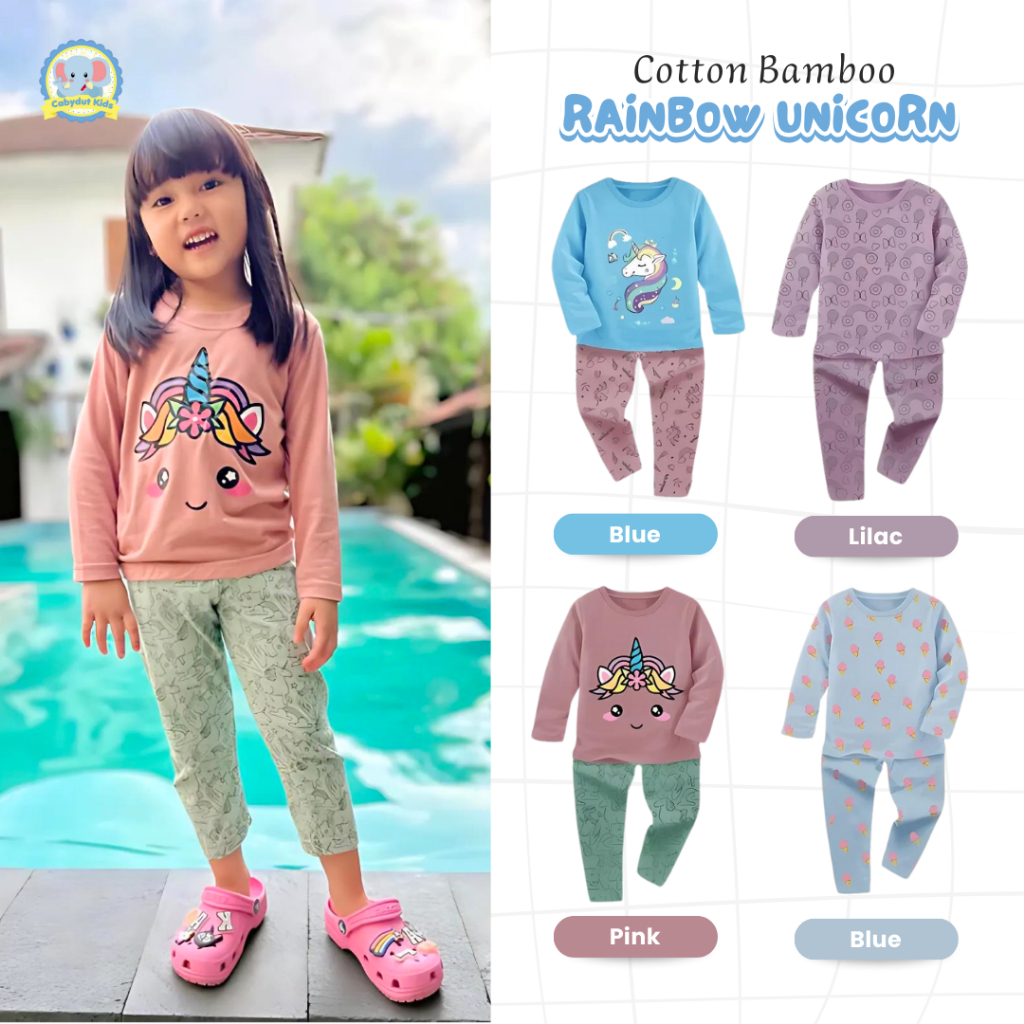 Baju Tidur Anak Perempuan Piyama Lengan Panjang Cotton Bamboo Rainbow Unicorn