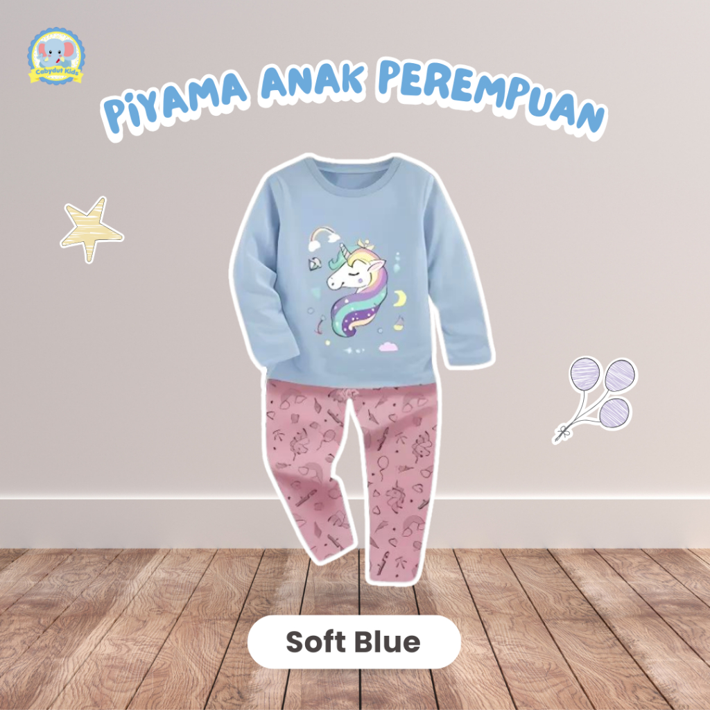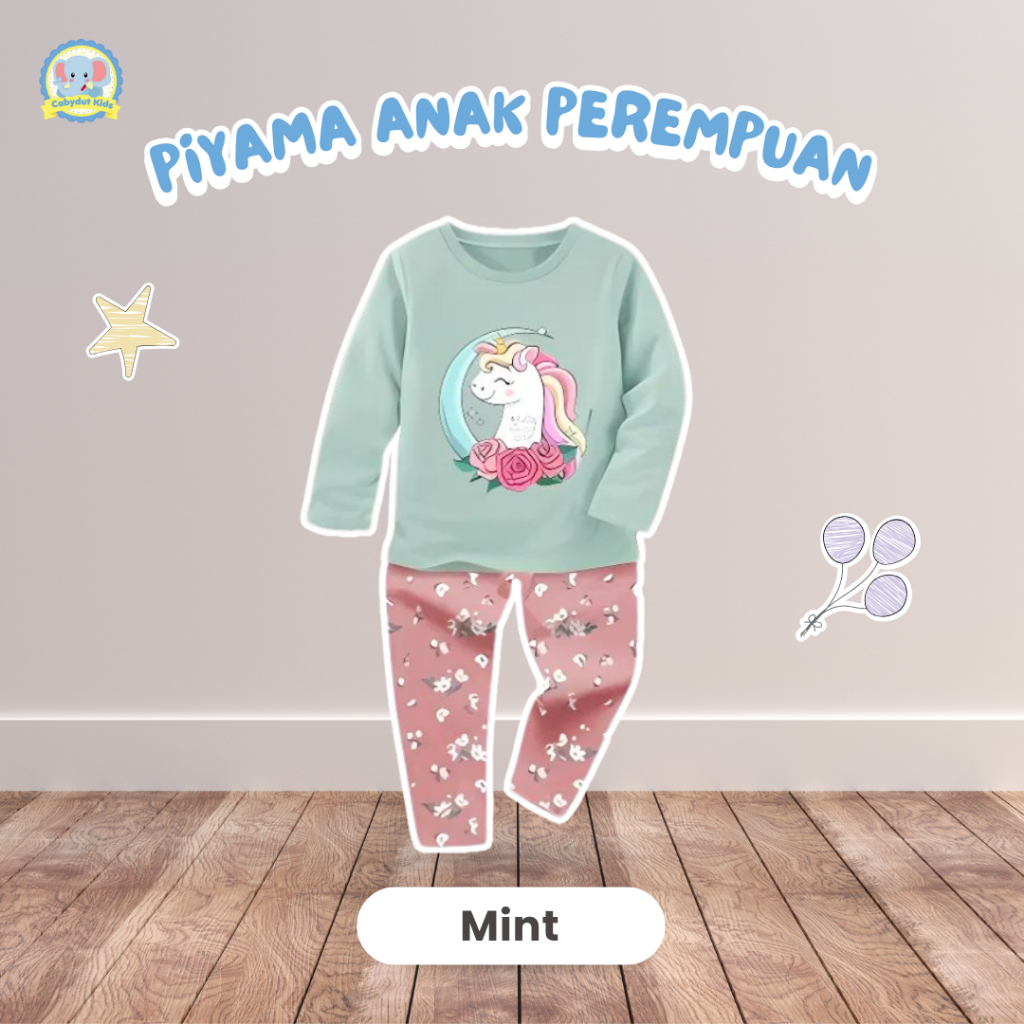 Baju Tidur Anak Perempuan Piyama Lengan Panjang Cotton Bamboo Motif Unicorn