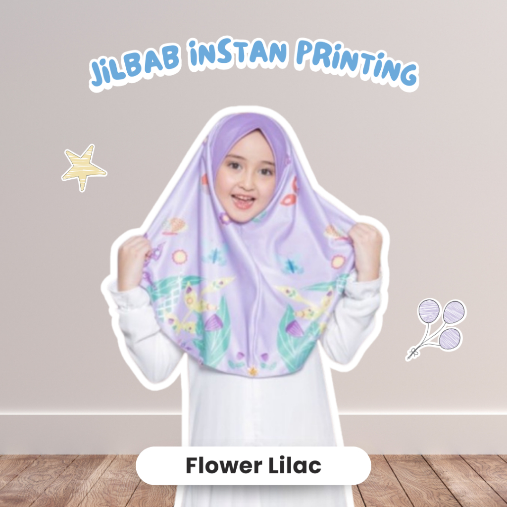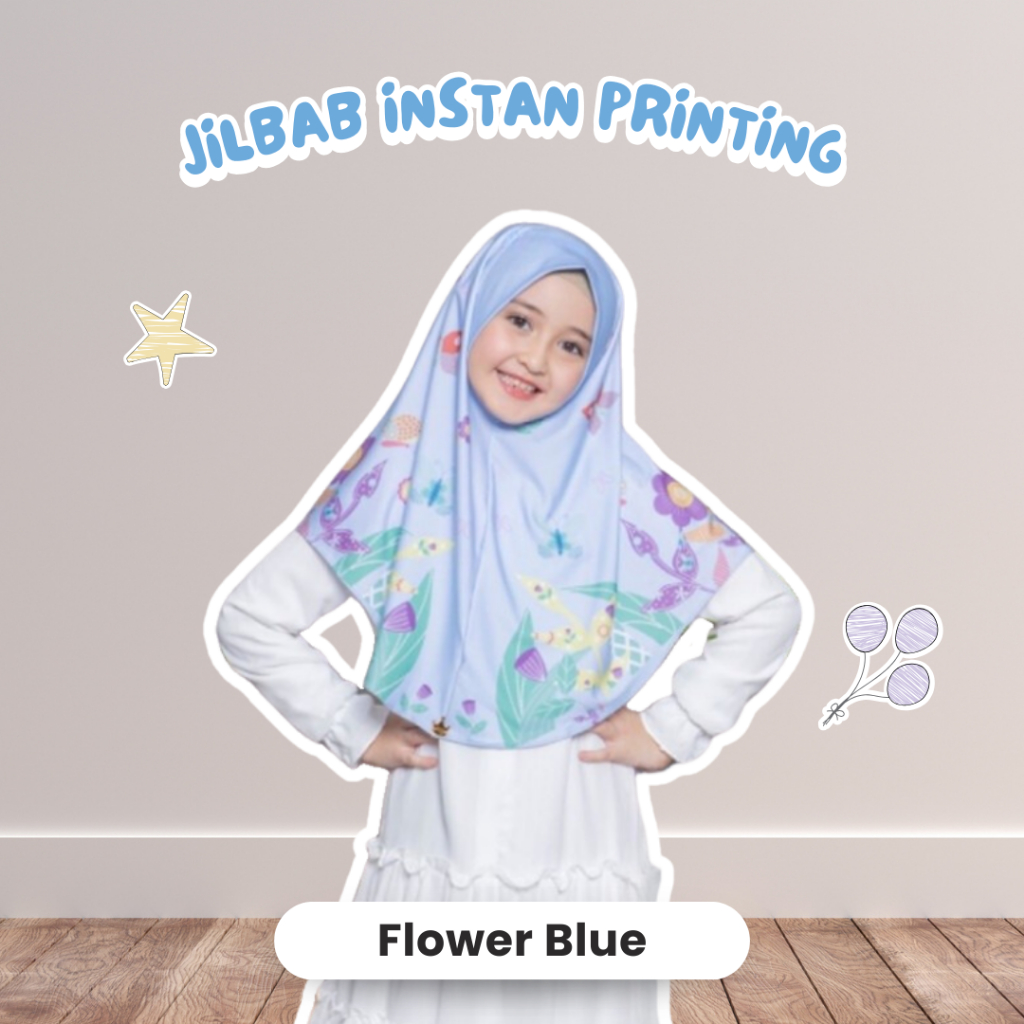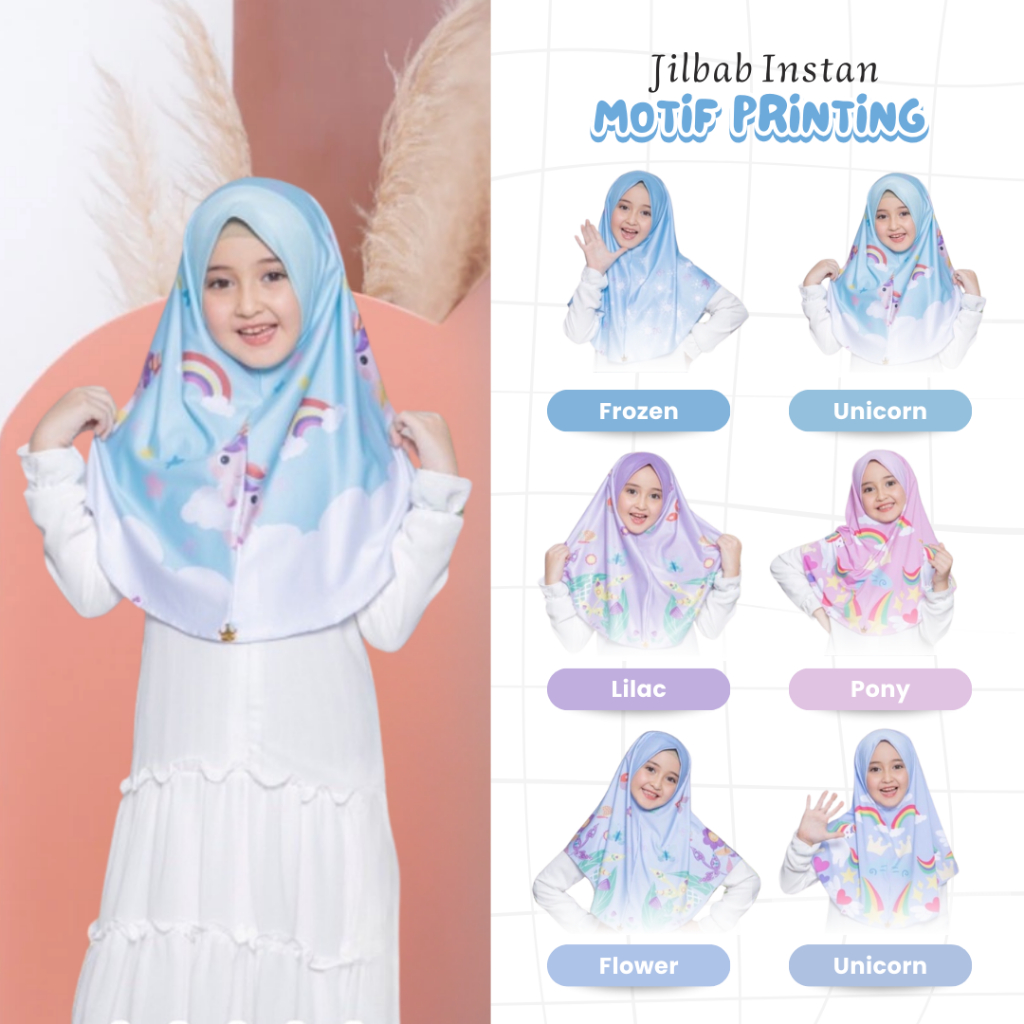 Jilbab Anak Instan Printing Motif Frozen Flower V3