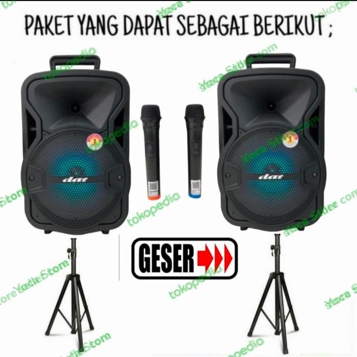 Paket Sound 2 Speaker Aktif DAT 8 Inch Mixer Bluetooth 2 Mic Wireless