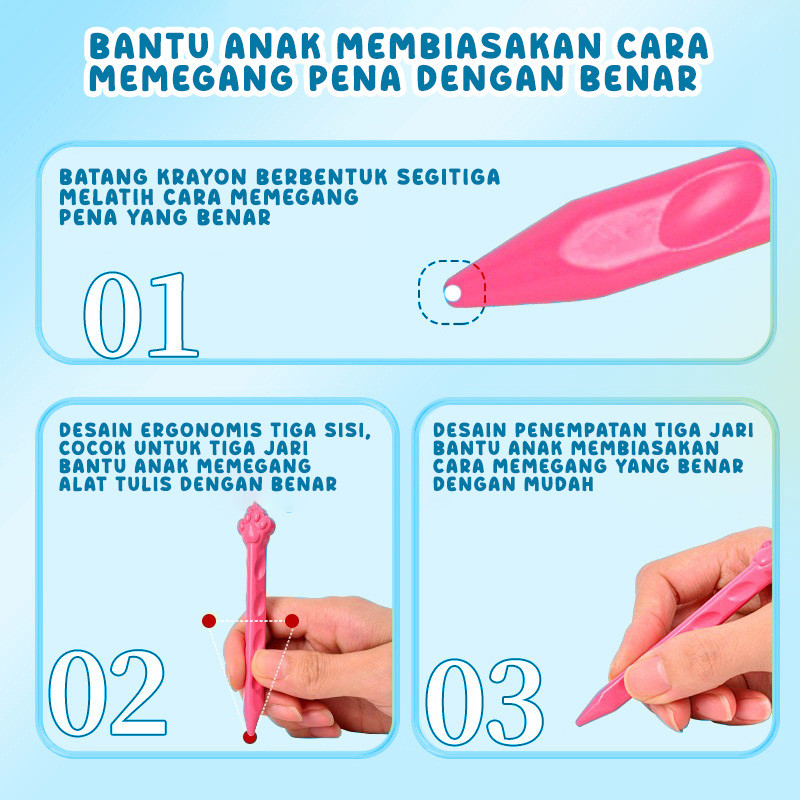 Crayon Plastik Anti Air Alat Mewarnai Anti Kotor Tangan Perlengkapan Menggambar Anak Sekolah