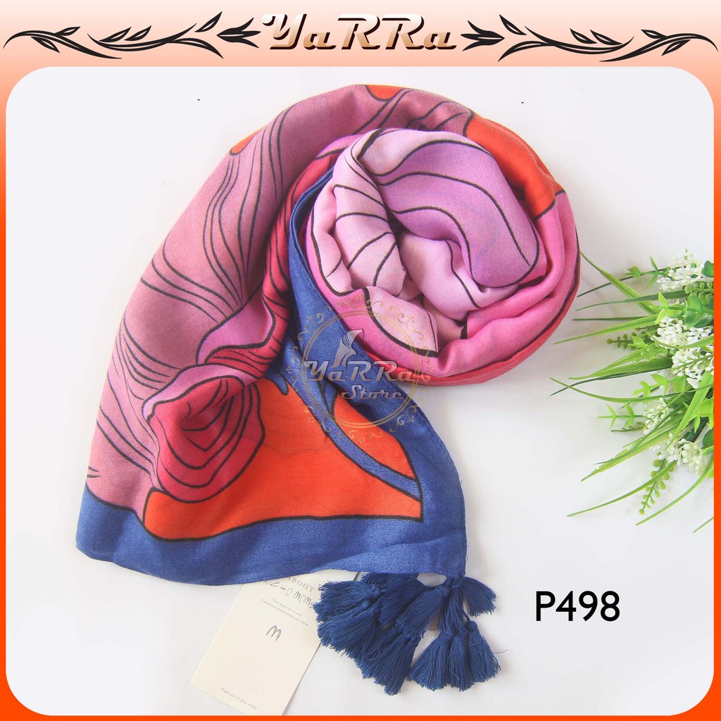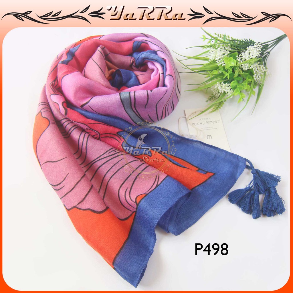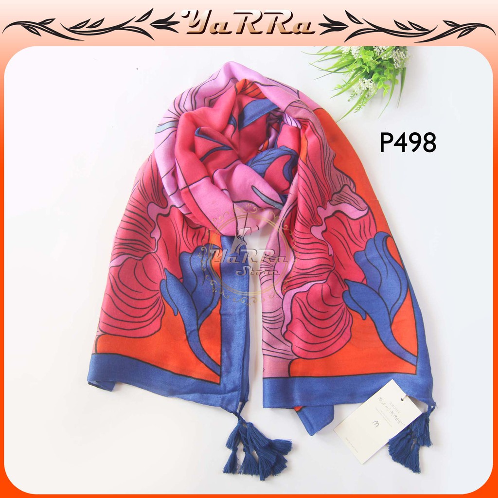 Pashmina Motif Bunga pasmina Hijab Kerudung arab Import P498