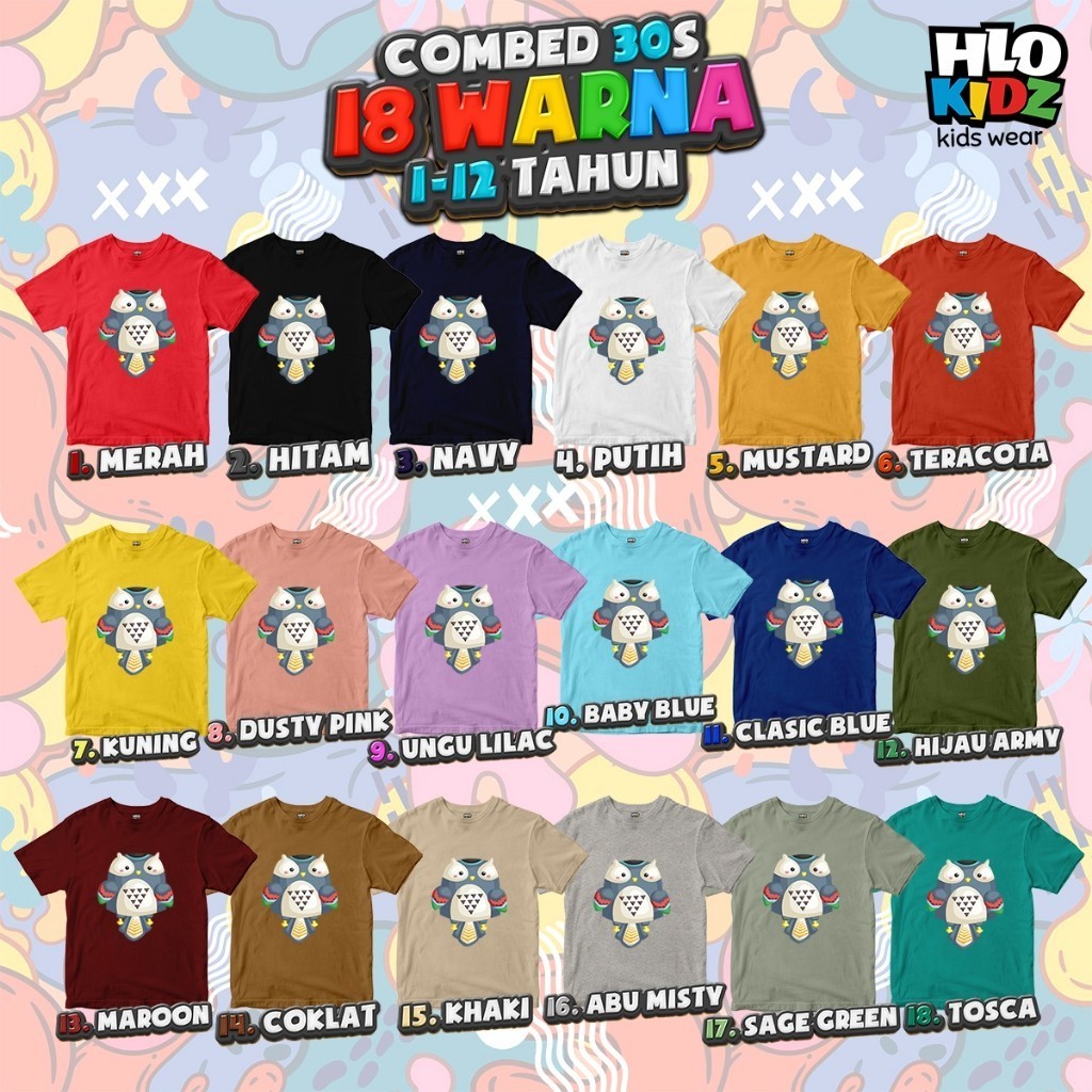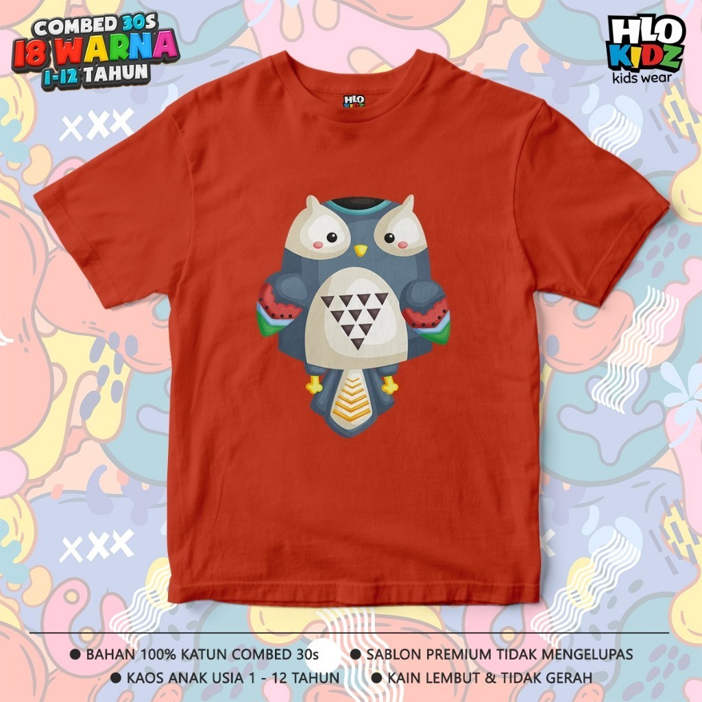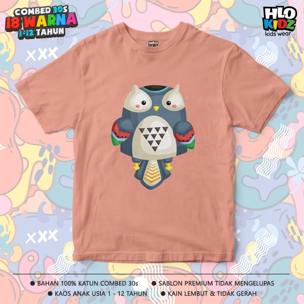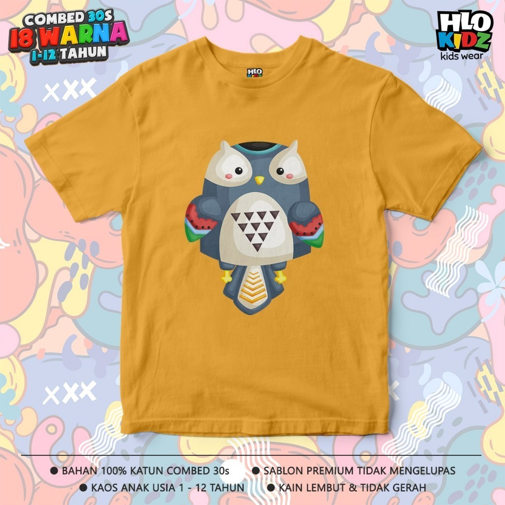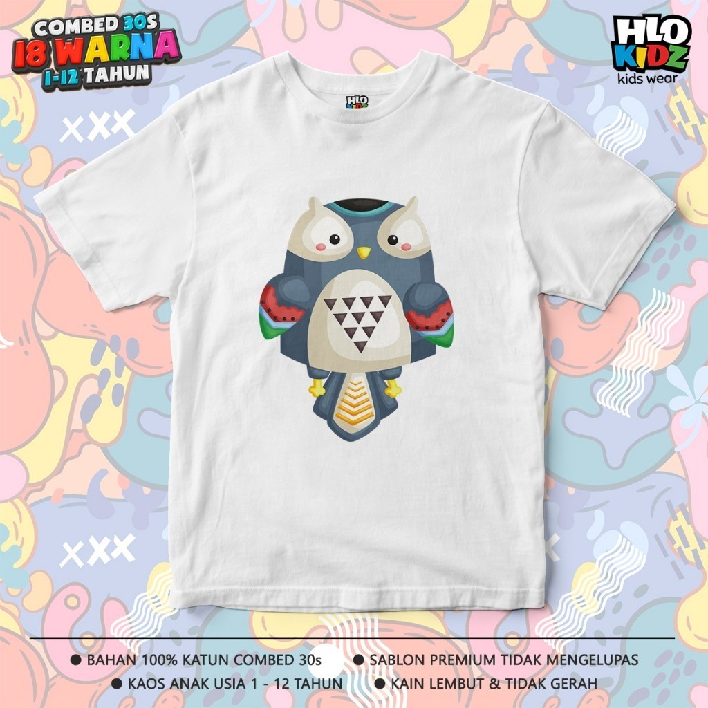 BAJU KAOS DISTRO ANAK LAKI-LAKI PEREMPUAN KATUN COMBED 30S HLO KIDZ GAMBAR BURUNG HANTU OWL TRIBAL
