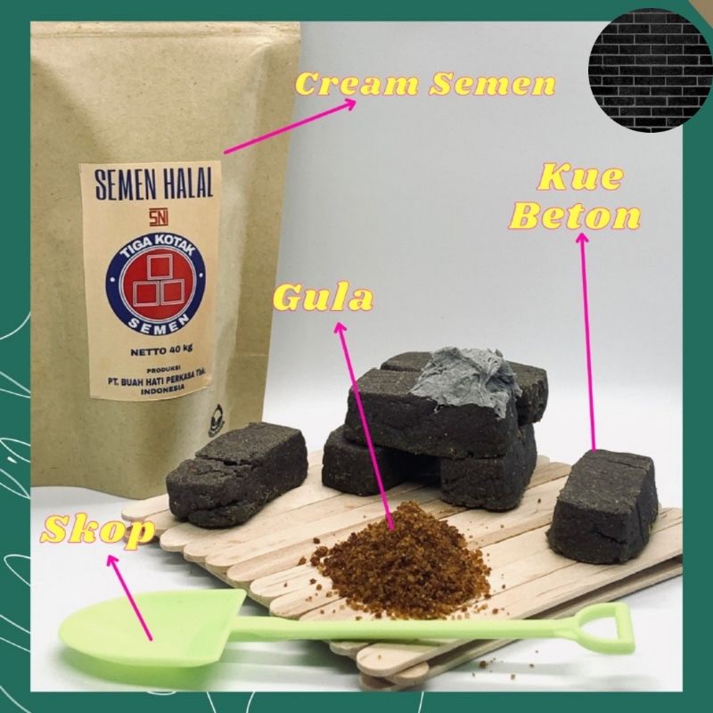 HAMPERS HADIAH KADO SOUVENIR PARSEL PARCEL UNIK VIRAL ULANG TAHUN ANNIVERSARY BIRTHDAY CELEBRATION KUE BENTUK BAHAN BANGUNAN BATU BATA WARNA COKLAT DAN HITAM DENGAN SEMEN DAN PASIR EDIBLE BISA DIMAKAN KREATIF DIY KUE ULANG TAHUN ANEH DAN LUCU MAINAN ANAK