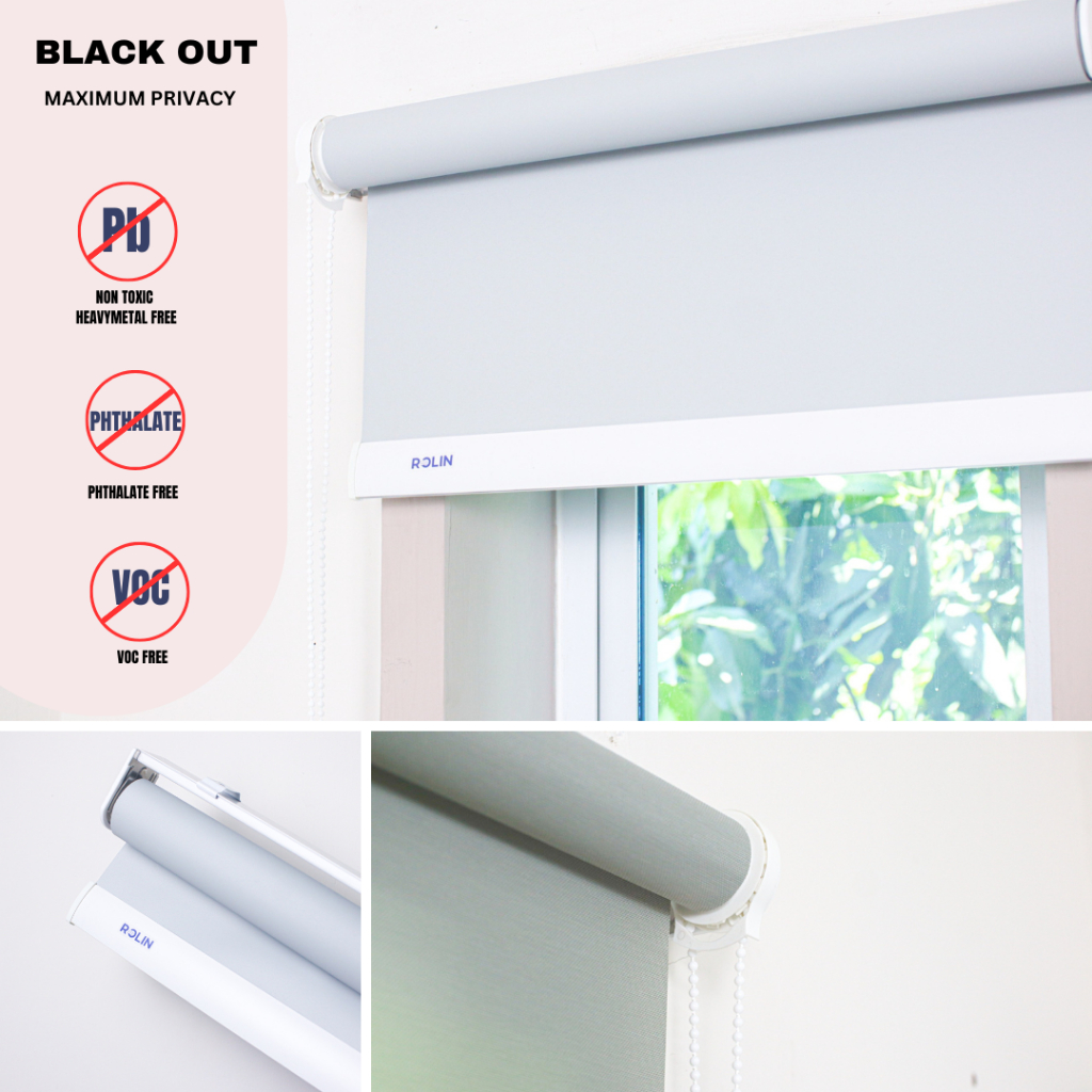 Roller Blinds Uv Protection Black Out (99%) - Tidak tembus Cahaya - Bagus untuk Kamar Tidur - Mudah dibersihkan - Tirai Jendela Gulung Gorden - Dengan Headrail - Chain Standar
