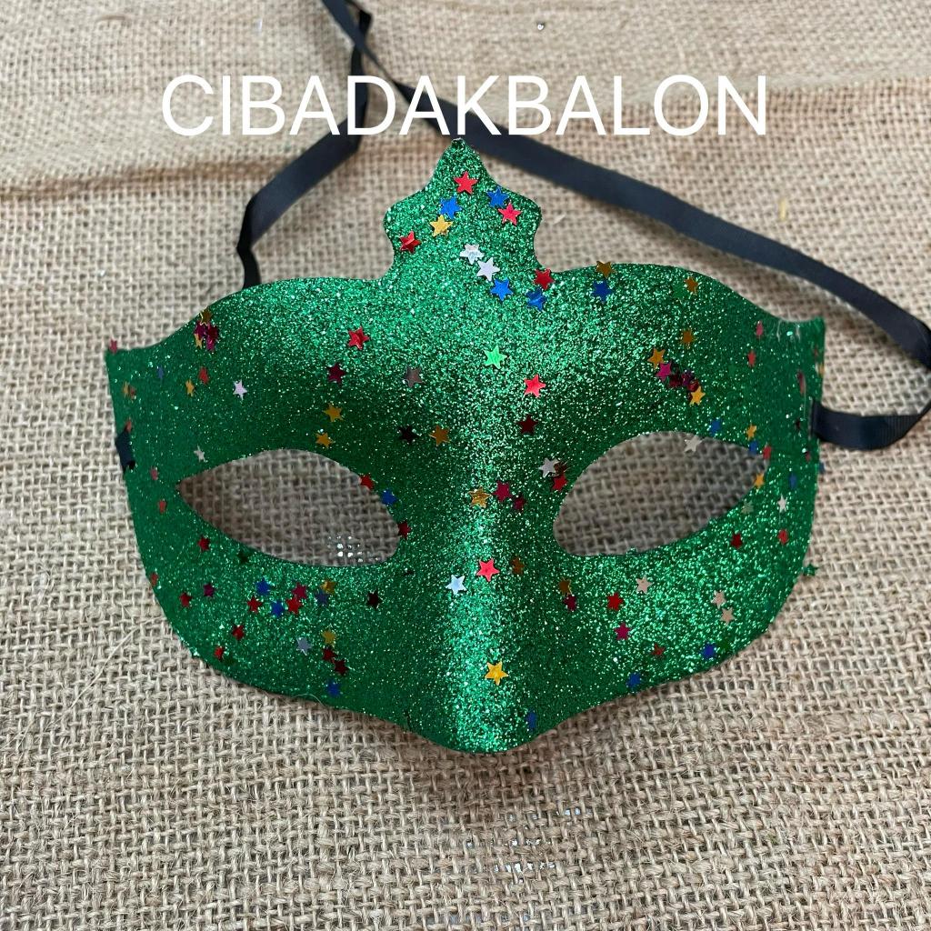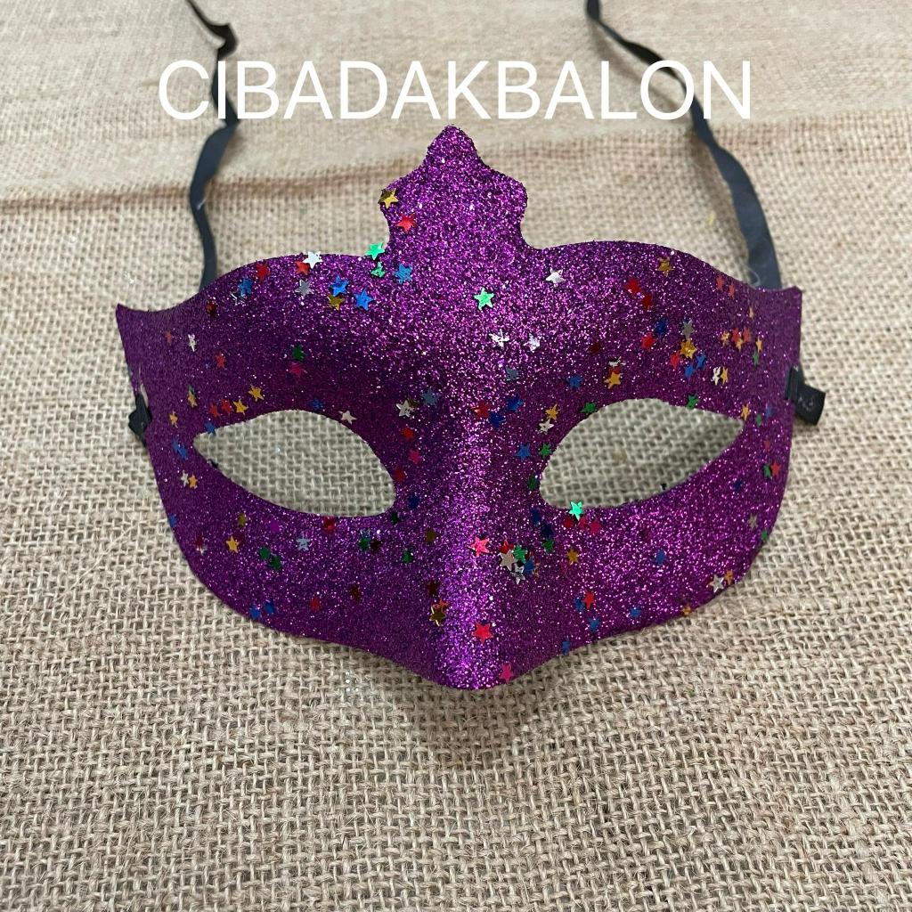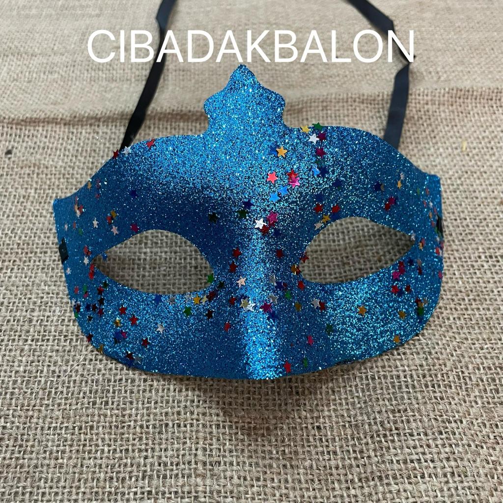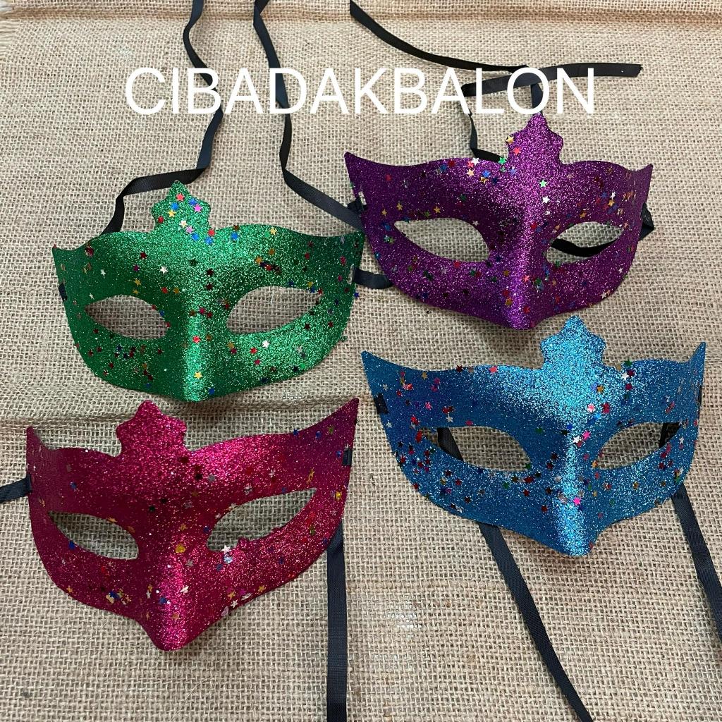 Topeng Pesta Glitter Bintang / Star Glitter Party Mask / Hijau Ungu Pink Biru