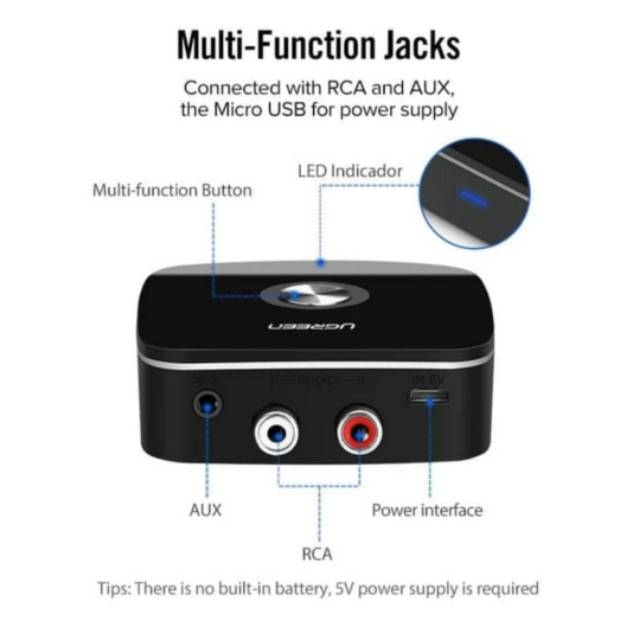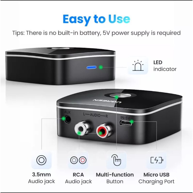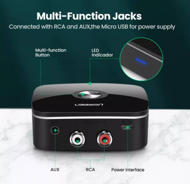 Ugreen Bluetooth Receiver 5.1 AptX LL 2 Rca Aux 3.5mm Wireless Adapter