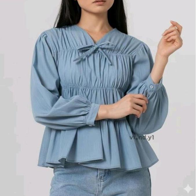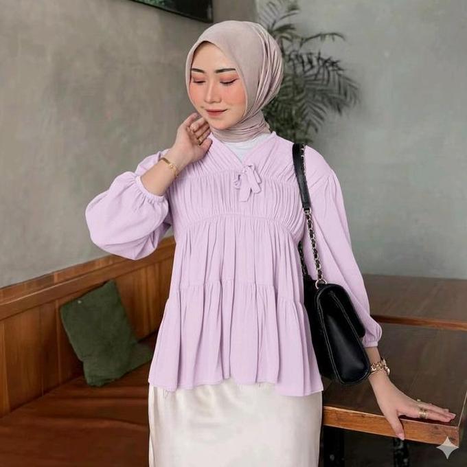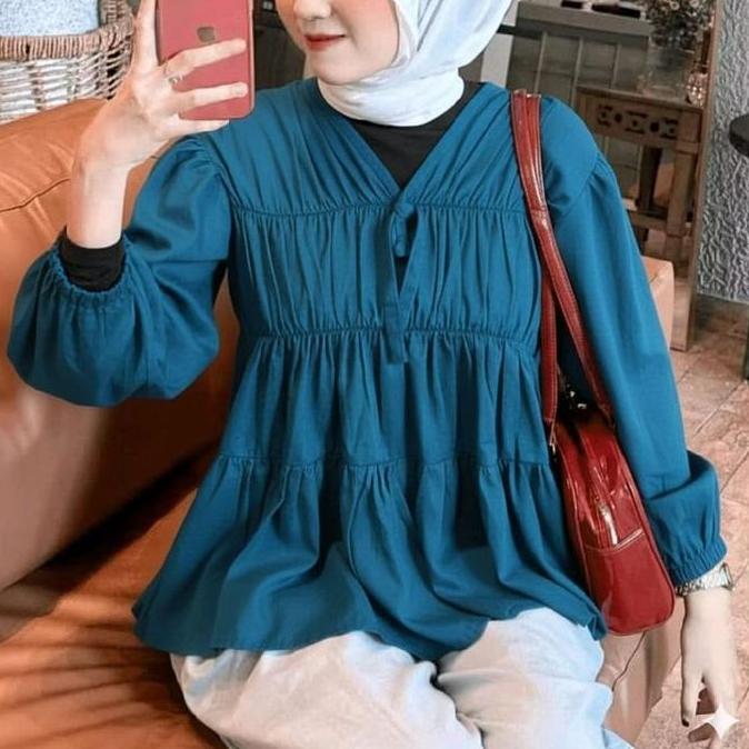 Tahan Lama Mireya Blouse Kerut Depan Rayon Atasan Wanita Polos Lengan PanjangTwill