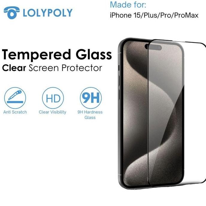 lolypoly full cover tempered glass iphone 15 series original pelindung layar stok terbatas