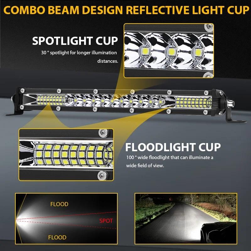 Ultra Slim 10'' 20'' 30'' led light bar 12V 24V Led Light Bar Combo Spot Banjir Mengemudi Lampu kerja untuk Mobil Jeep Truk Traktor off road 4x4