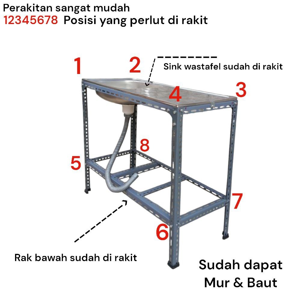MEJA CUCI PIRING TERMURAH, WASTAFEL PORTABLE RANGKA SIKU BESI UKURAN 96, KOKOH, KUAT