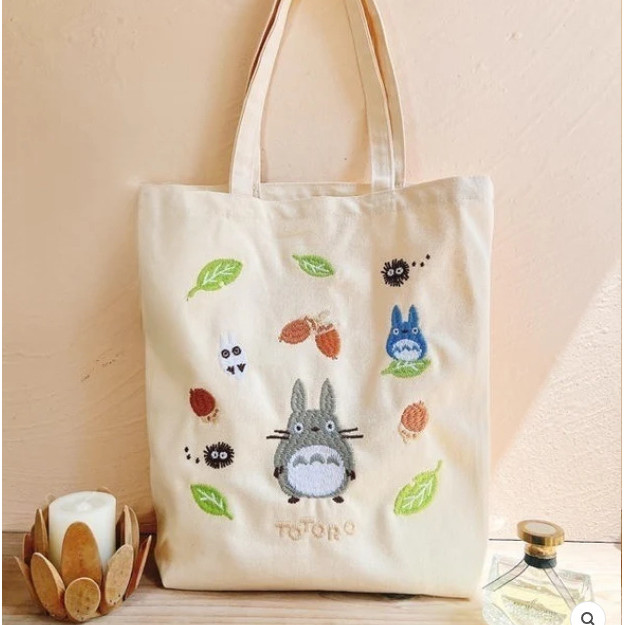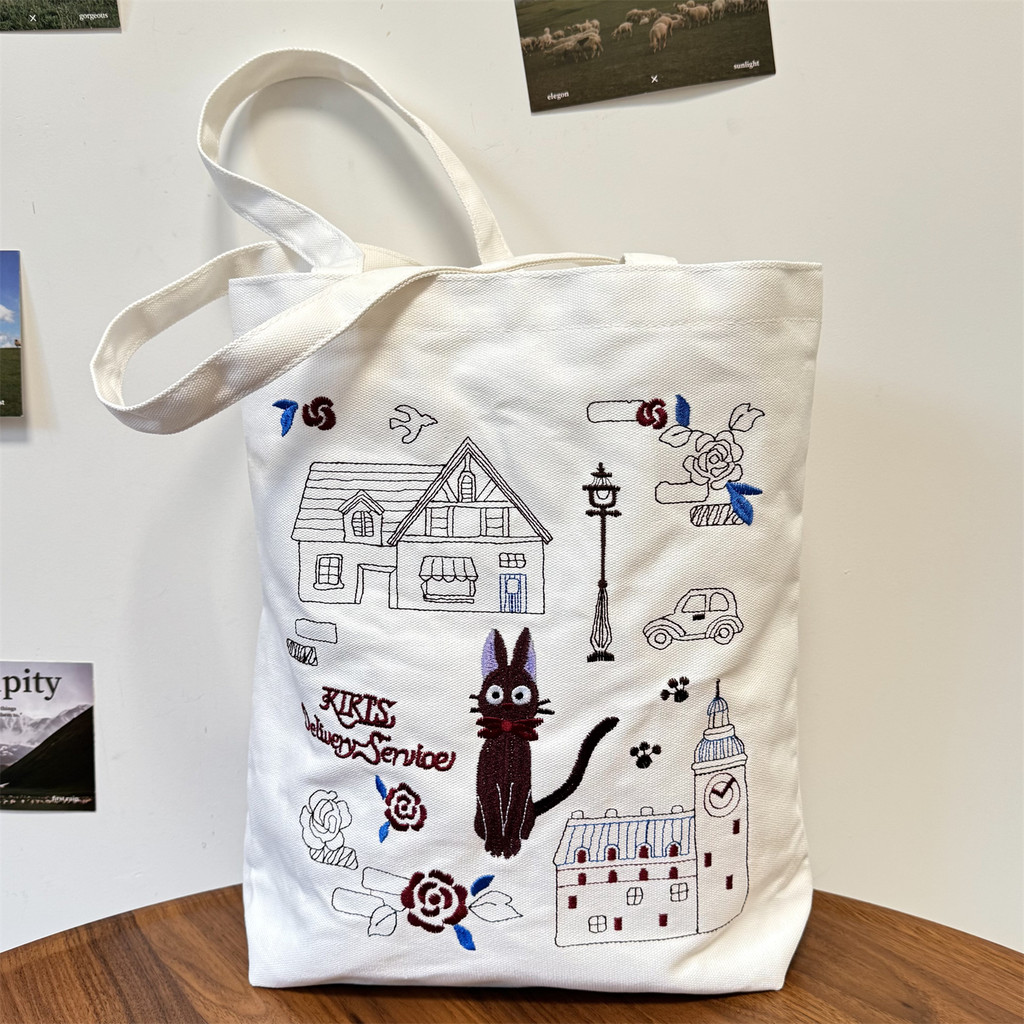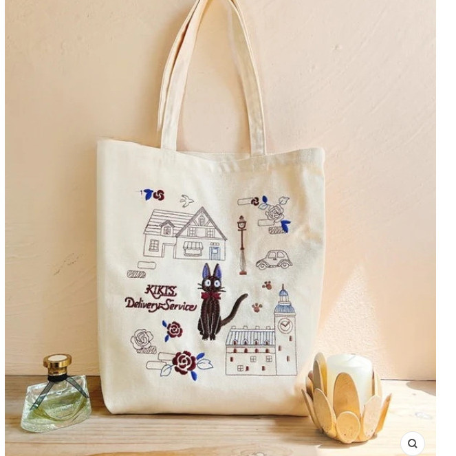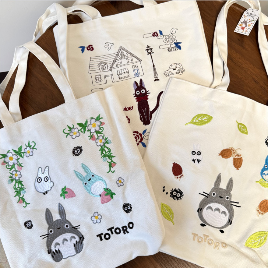 Tas Tote Kanvas Bordir Studio Ghibli Premium - Totoro / Jiji Kiki’s Delivery Service
