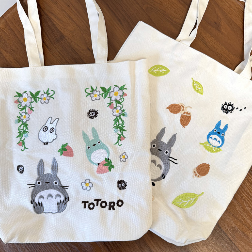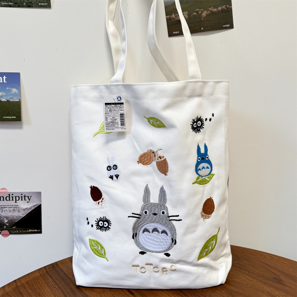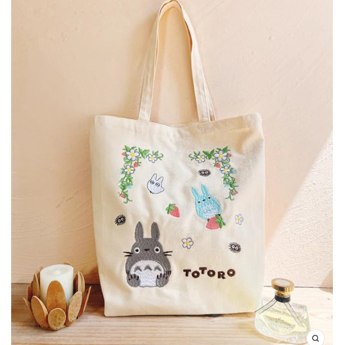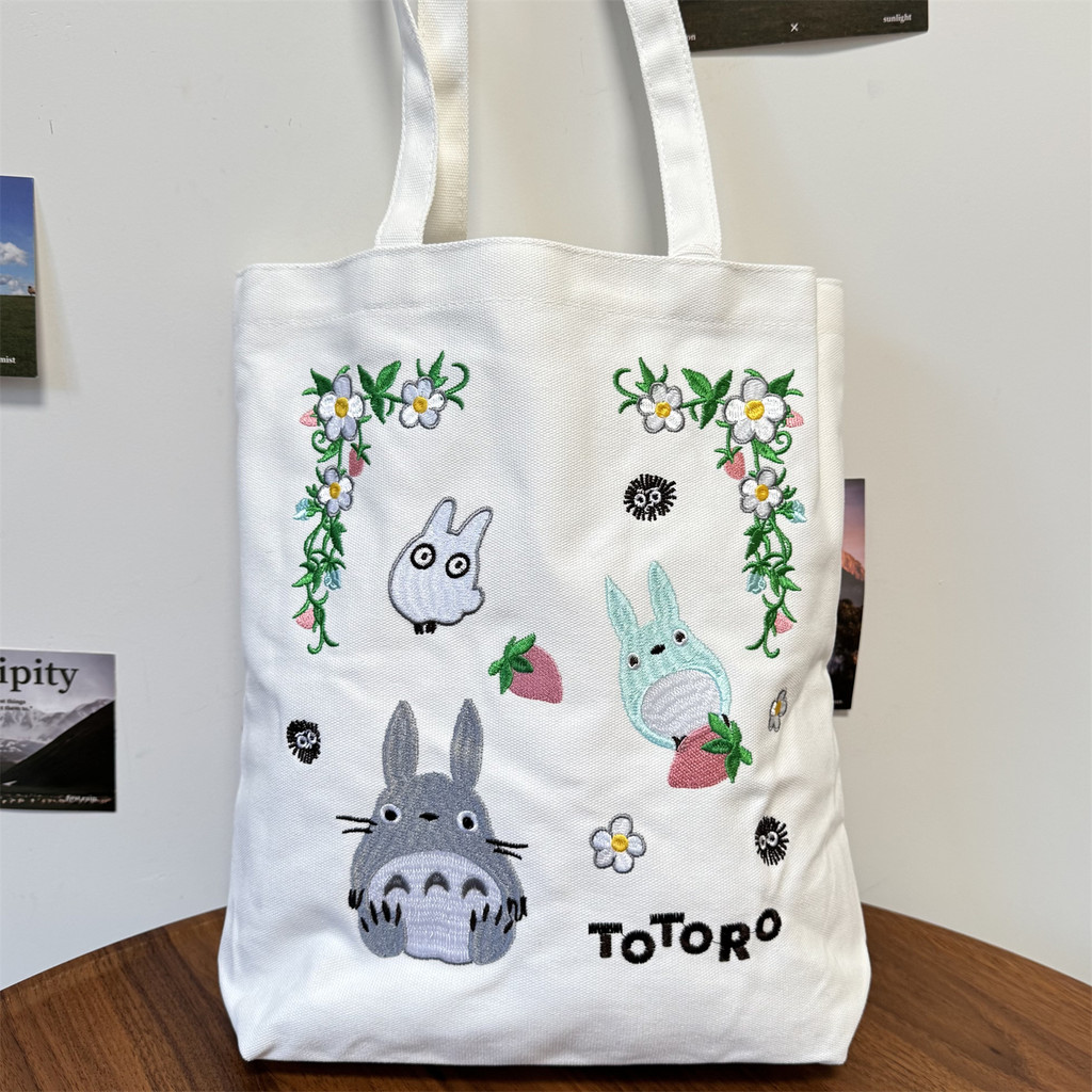 Tas Tote Kanvas Bordir Studio Ghibli Premium - Totoro / Jiji Kiki’s Delivery Service