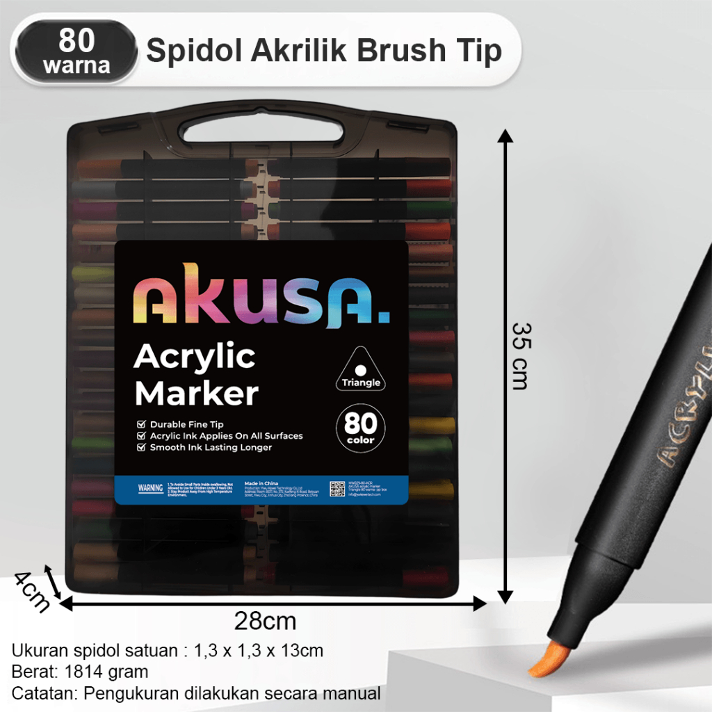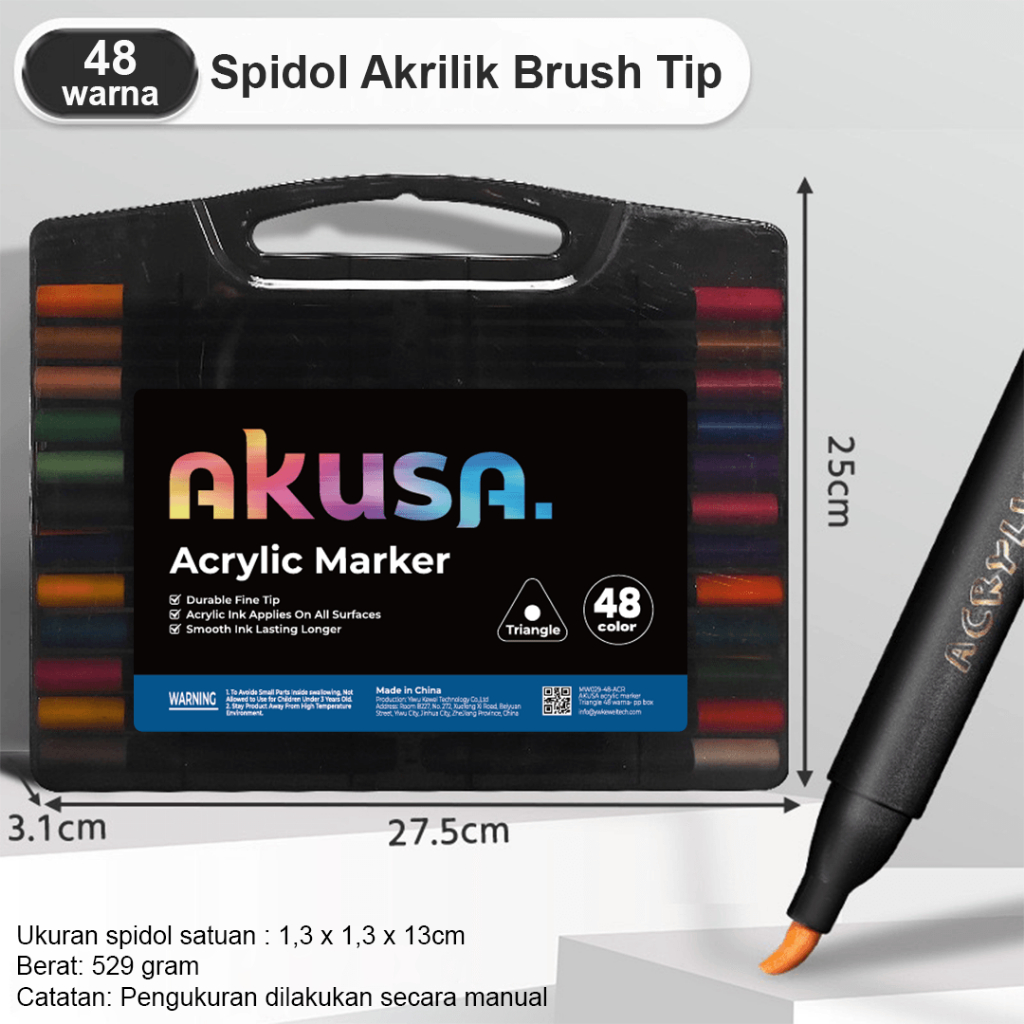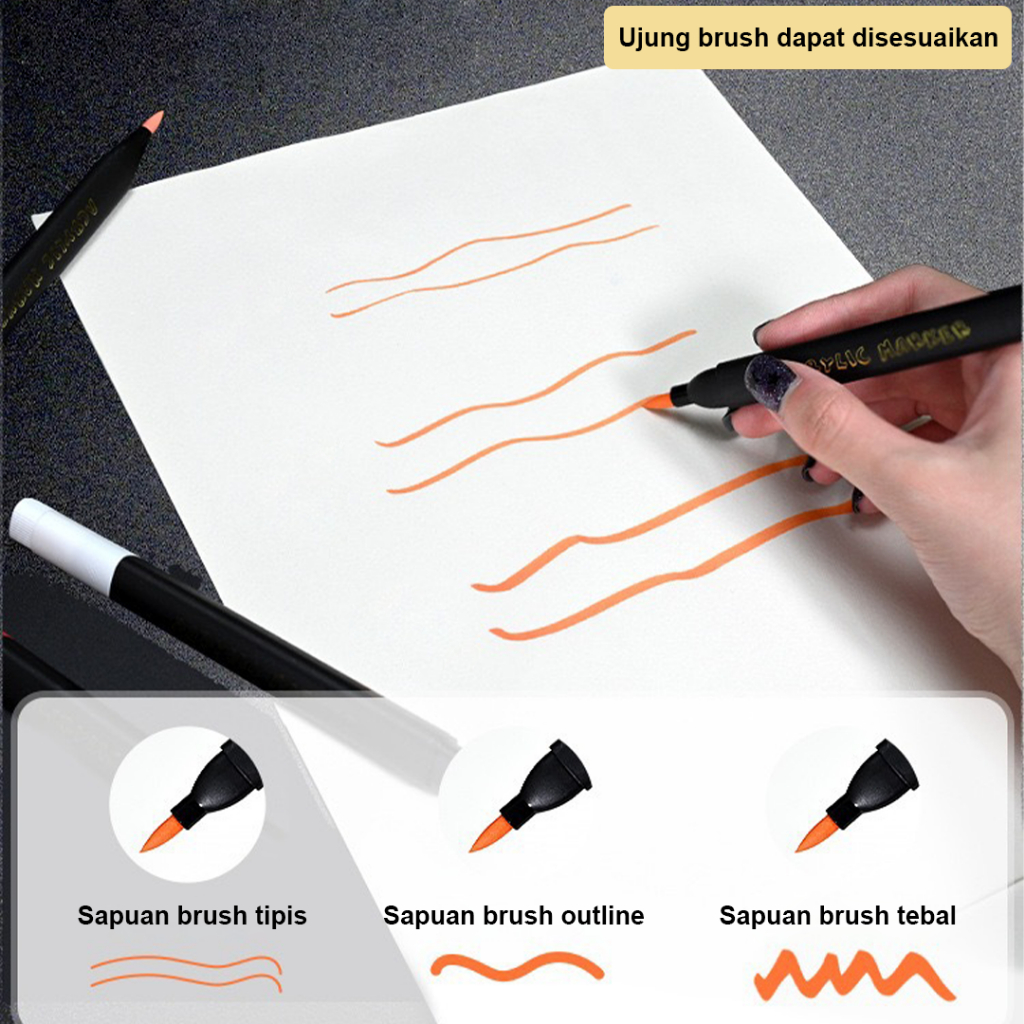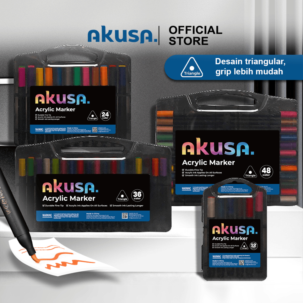 AKUSA Marker Acrylic Brush 12/24/36/48/60/72/80Warna Spidol Akrilik DIY Sketch Painting Tinta Waterproof Brush Tip MW029