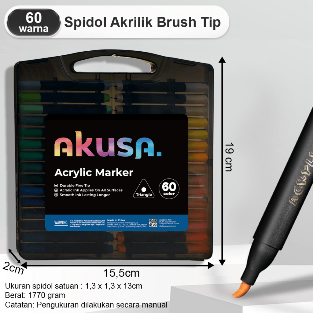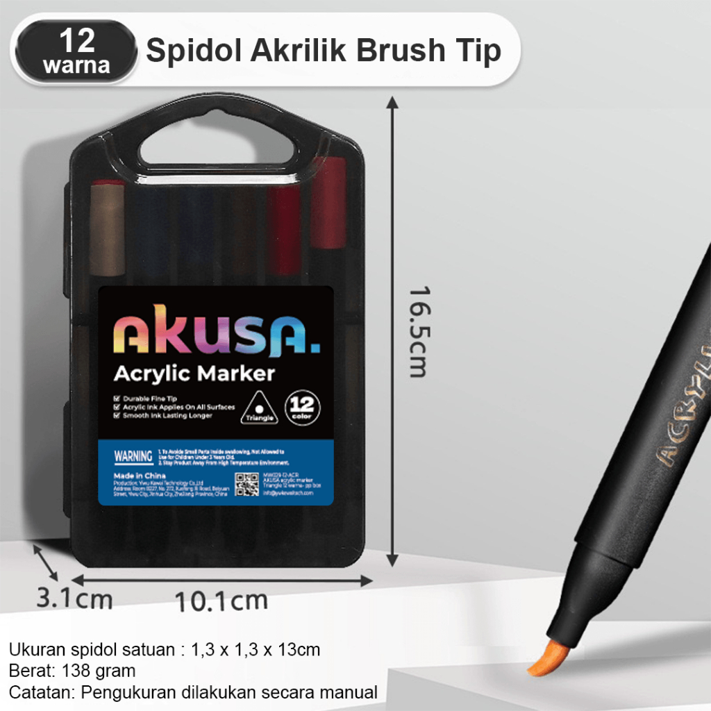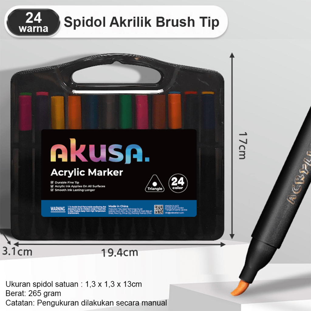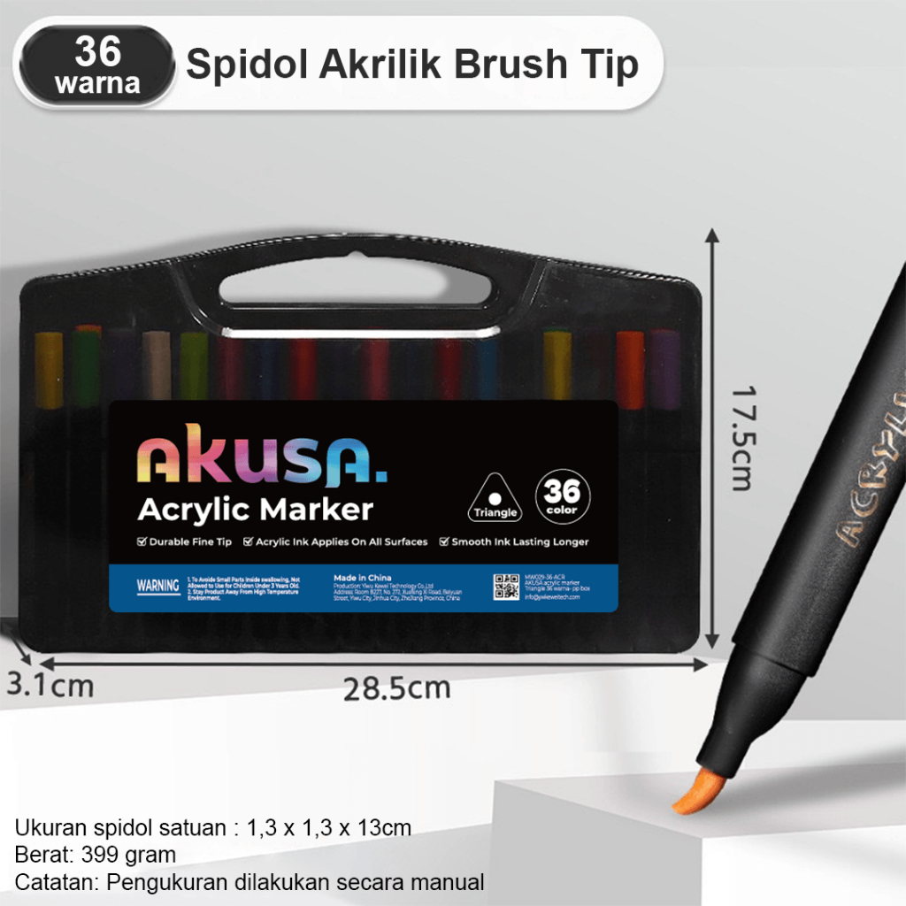 AKUSA Marker Acrylic Brush 12/24/36/48/60/72/80Warna Spidol Akrilik DIY Sketch Painting Tinta Waterproof Brush Tip MW029