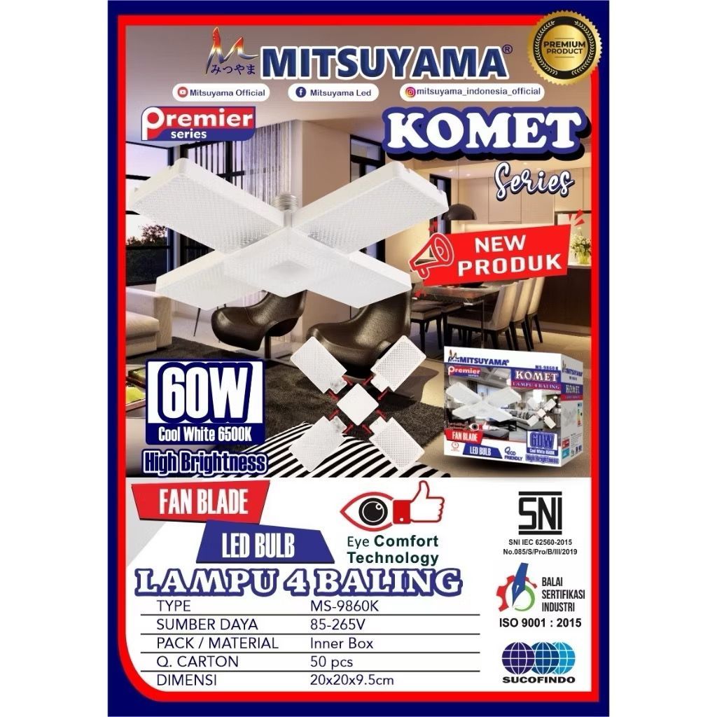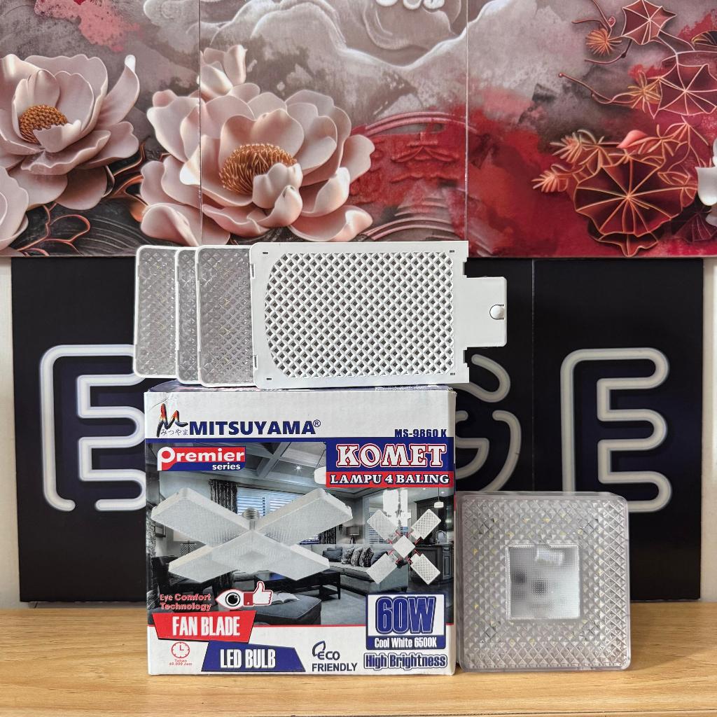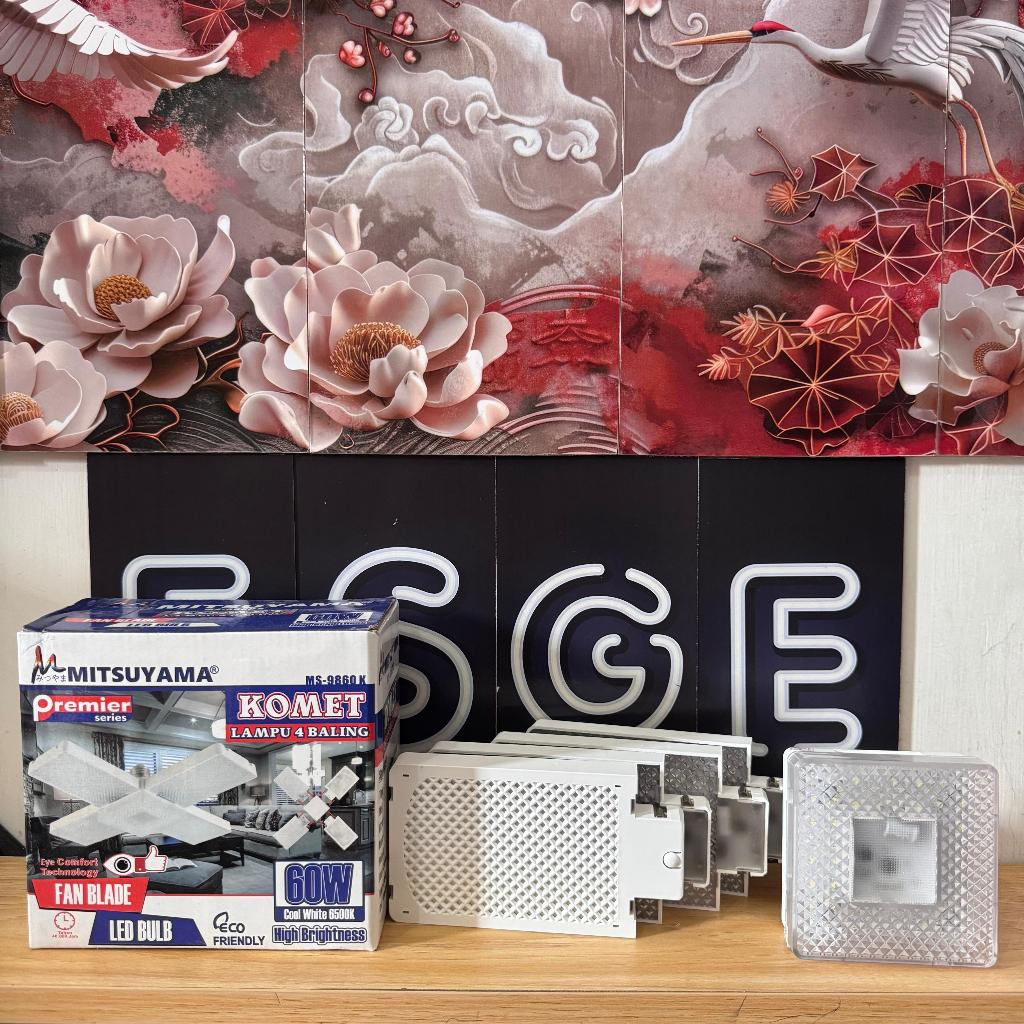 ORIGINAL LAMPU 4 BALING MITSUYAMA LAMPU BALING 60W KOMERT MS-9860K BILAH KIPAS LAMPU BOHLAM LED FAN