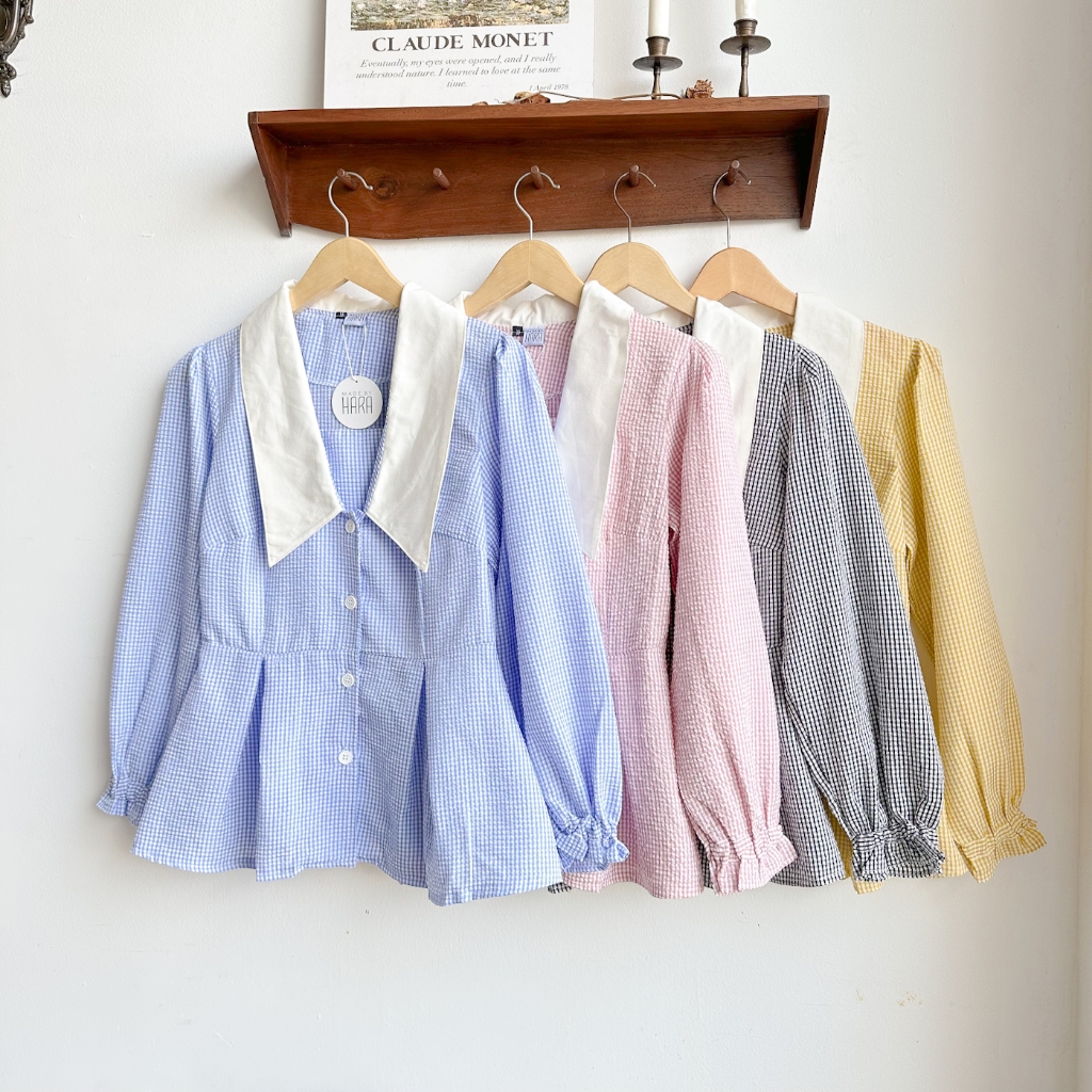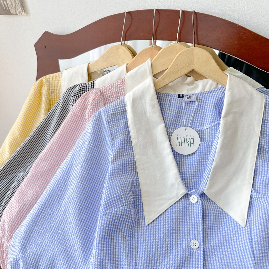 Madebyhara - Rumi Blouse Atasan Style Korea Kemeja Motif Gingham Haraskirt