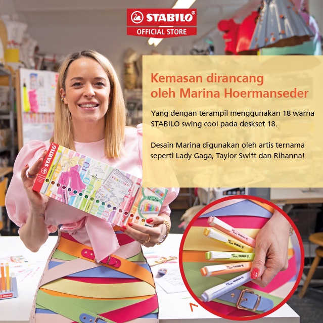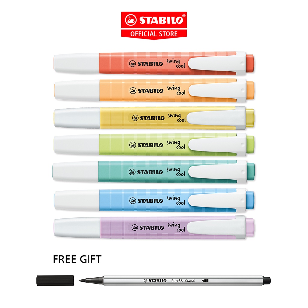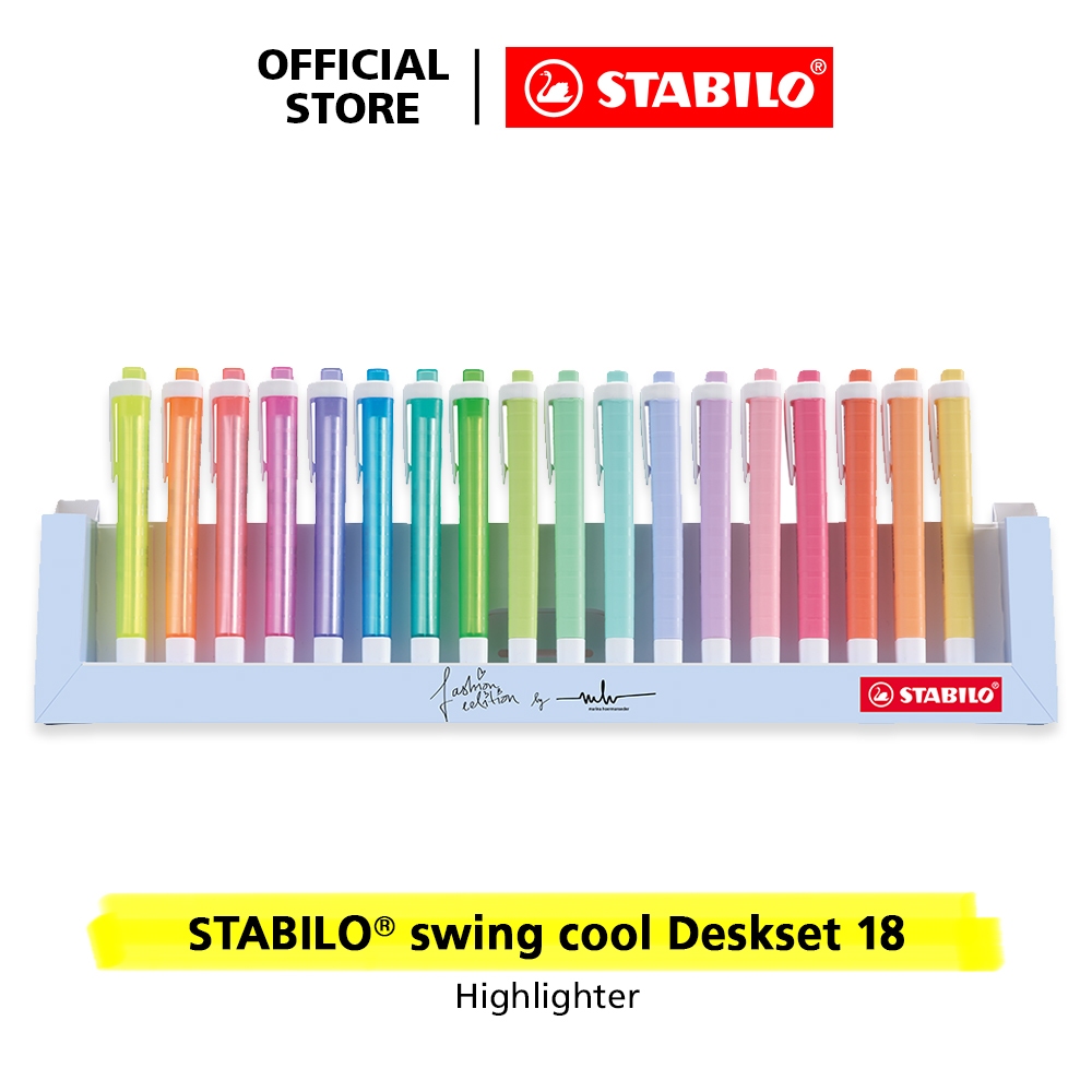STABILO swing cool Pastel Highlighter Deskset 18 Penanda Tulisan Warna Warni Tahan Lama Cepat Kering Set 10 Tidak Bau FREE Brush Rancangan Designer