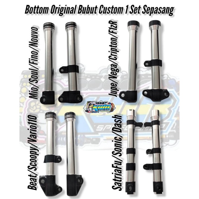 Tabung shock depan botom bubut custom kilap bottom ori original mio jupiter wave supra x 125 karisma beat vario scoopy satria fu sonic as 26