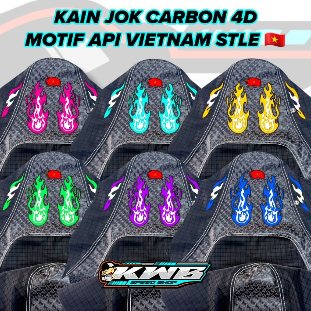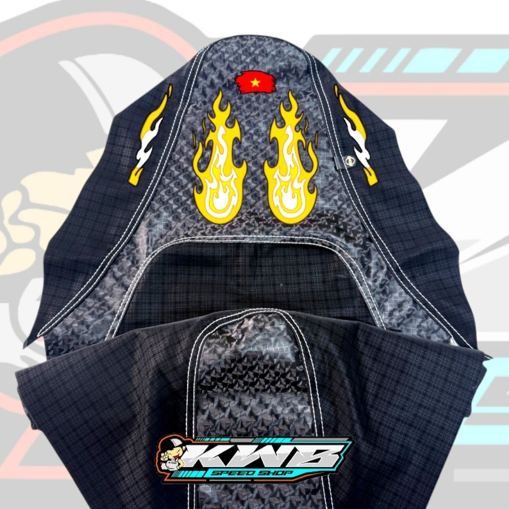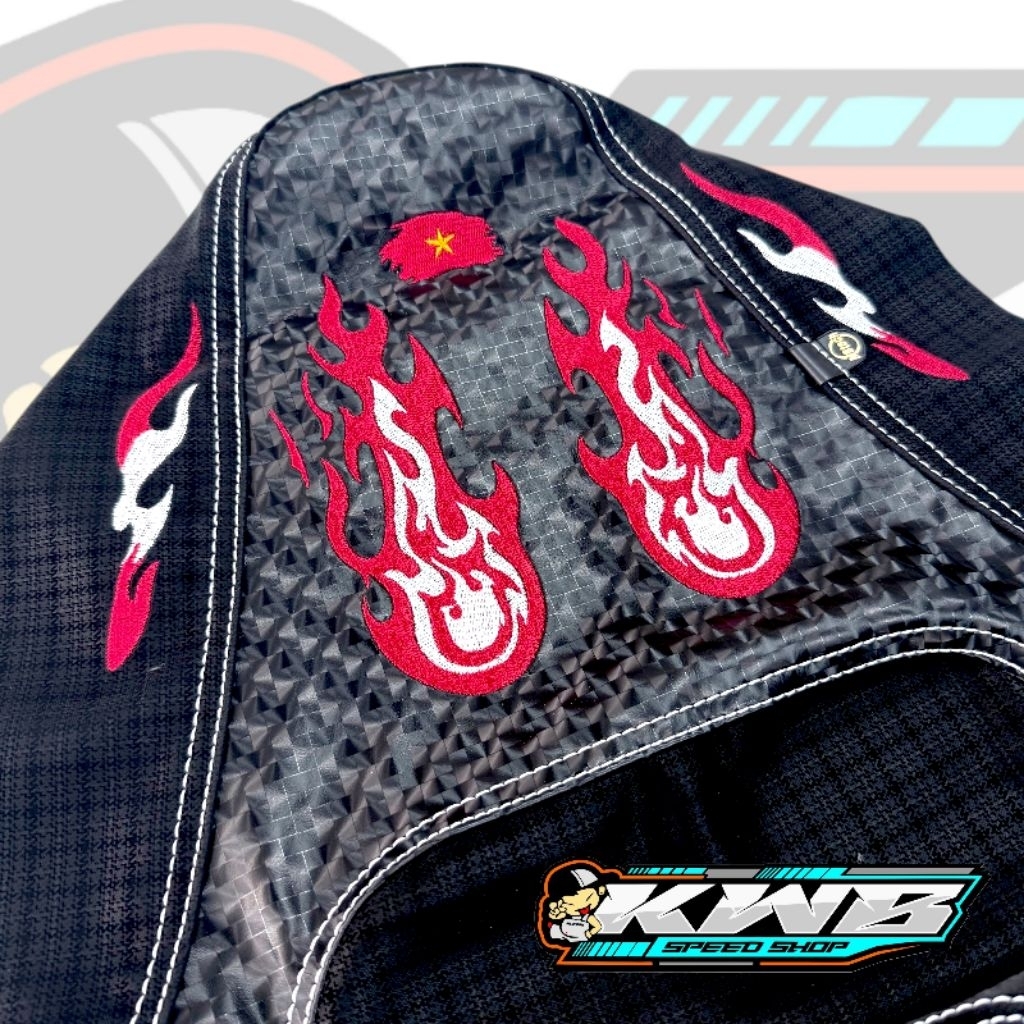 Kain Jok Sarung Kulit Jok V3 Mix Carbon 4D Motif Api V2 Logo Vietnam Style Universal Semua Motor Free Sticker