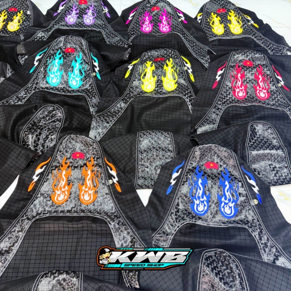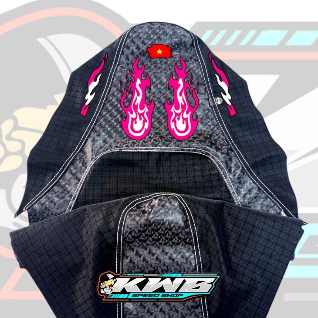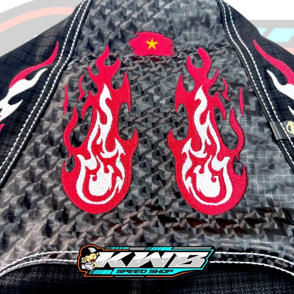 Kain Jok Sarung Kulit Jok V3 Mix Carbon 4D Motif Api V2 Logo Vietnam Style Universal Semua Motor Free Sticker