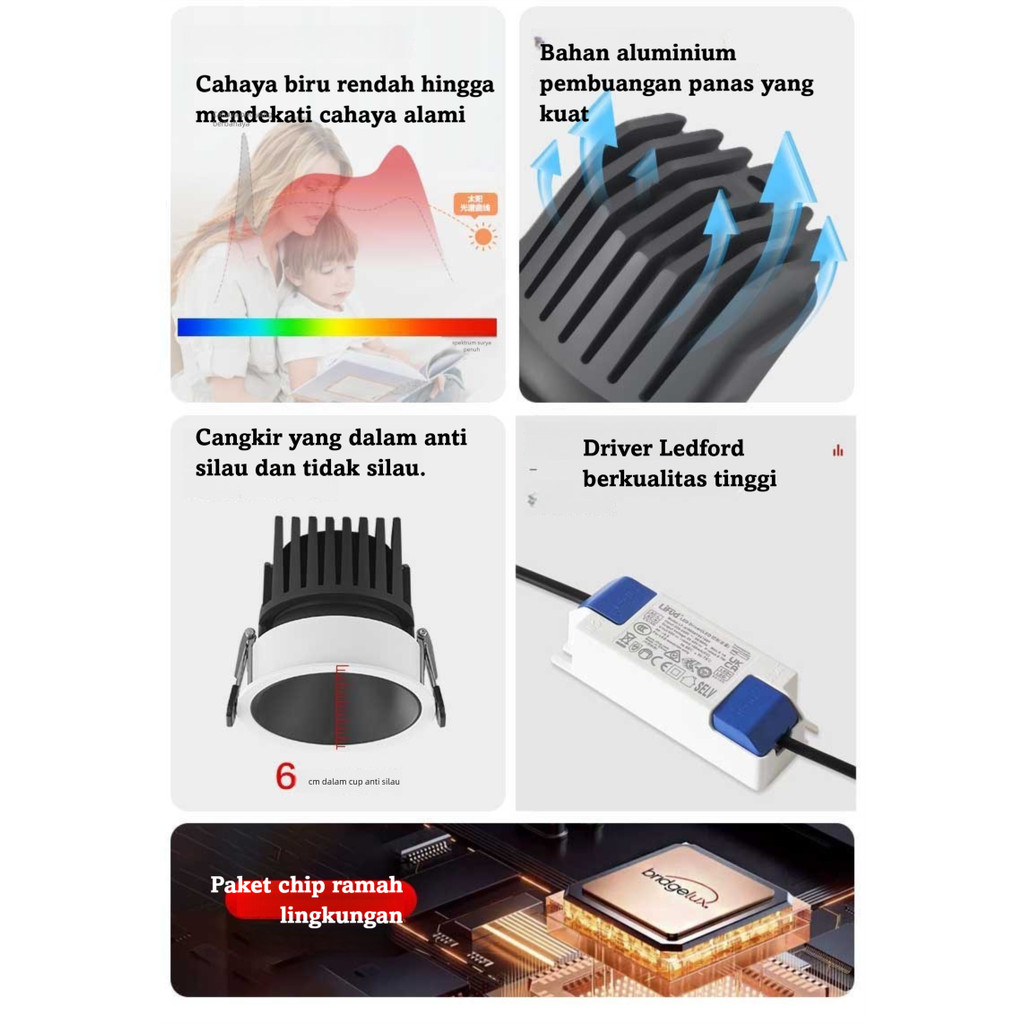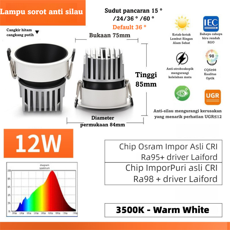 LED Spot Downlight CRI Ra98+ Anti Silau - Lampu Sorot Plafon Pencahayaan Berkualitas Tinggi
