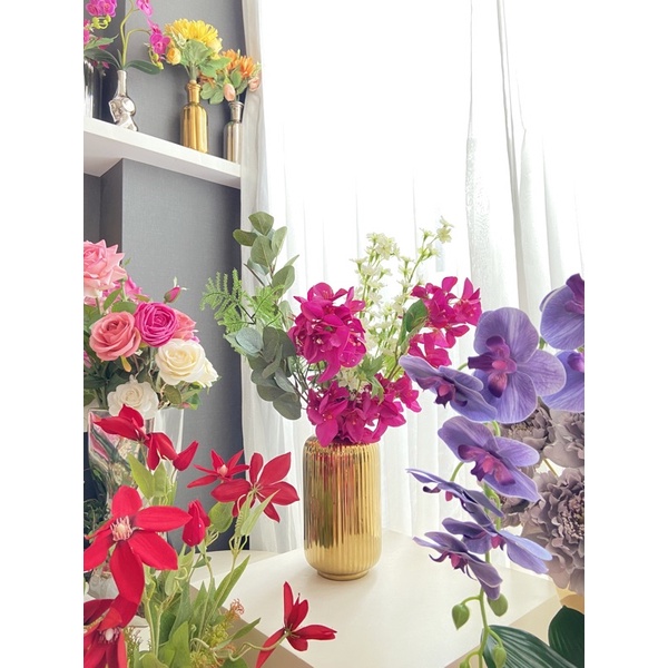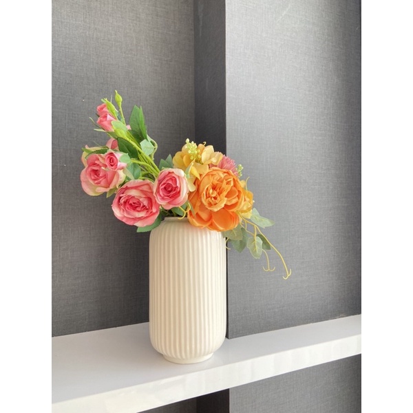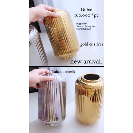 Vas Bunga Keramik Dekorasi Emas Gold / Silver / Vas Putih - Dubai