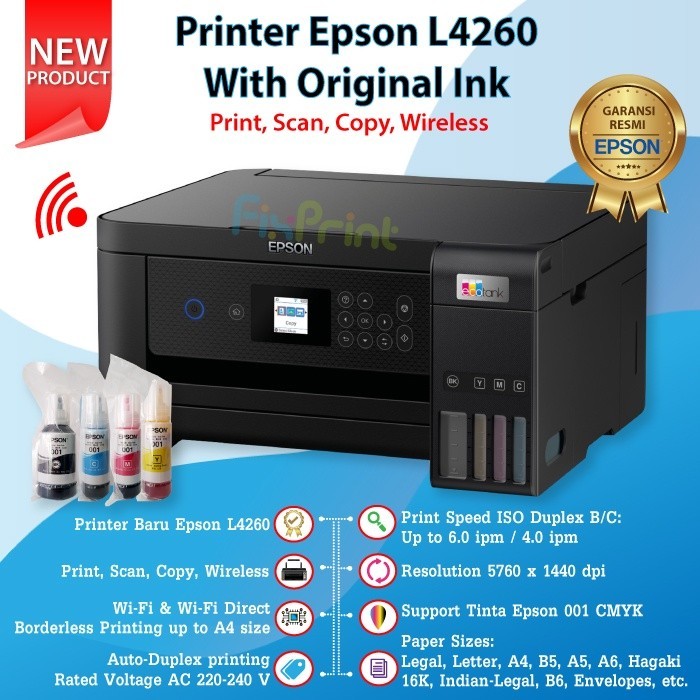 Printer Epson EcoTank L4260 All-in One Print Scan Copy WiFi Duplex New
