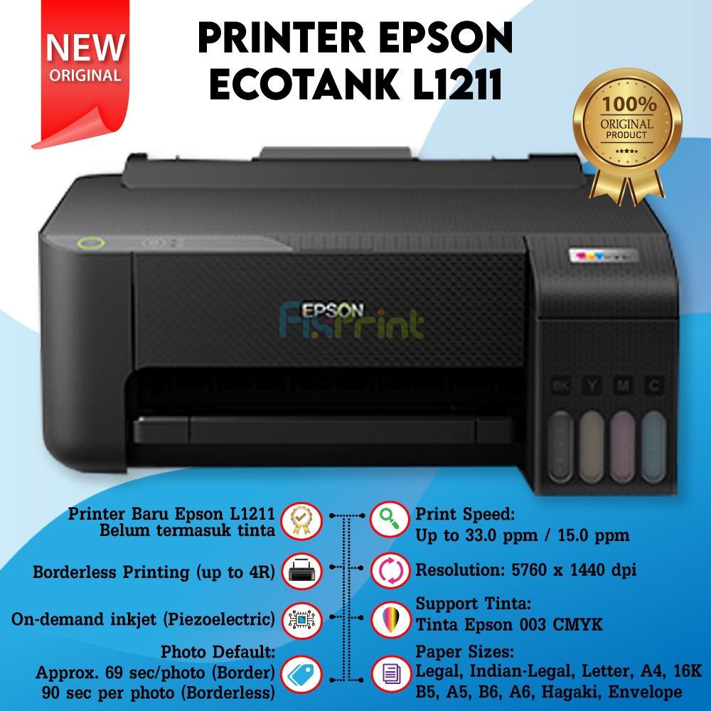 Printer Epson EcoTank L1211 Pengganti L1210 Print Only New Garansi Resmi