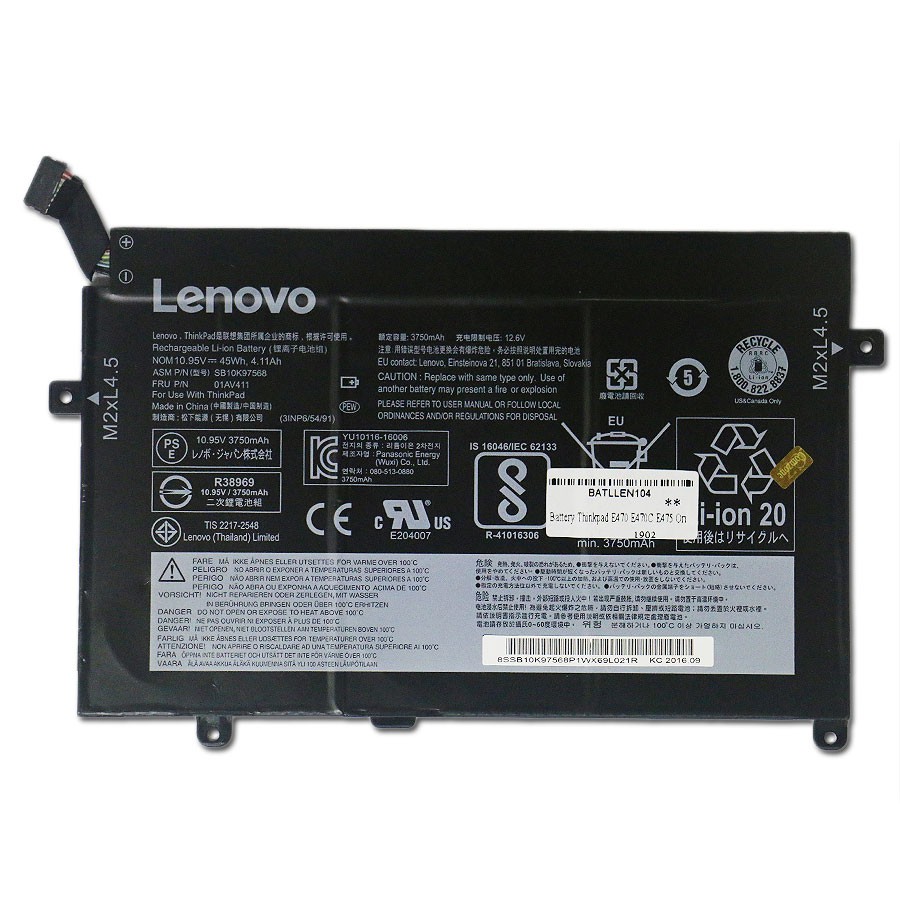 Baterai Lenovo Thinkpad E470 E470C E475 01AV412 SB10K97568 batllen104r