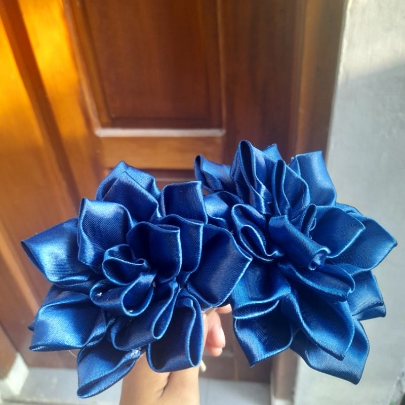 Bunga Pita Satin Dahlia Satuan BISA REQUEST WARNA (sudah termasuk tusuk bunga) Cantik dan Murah