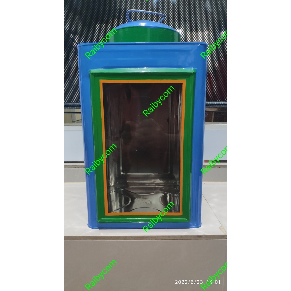 Kaleng Kerupuk Jadul Warung Blek Toples Kaca Krupuk Putih Besar 23 x 35 Cm