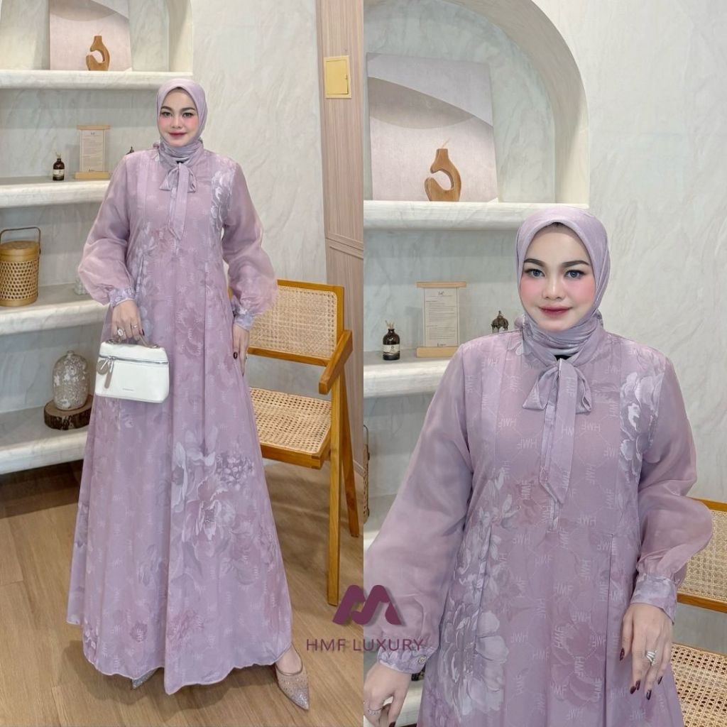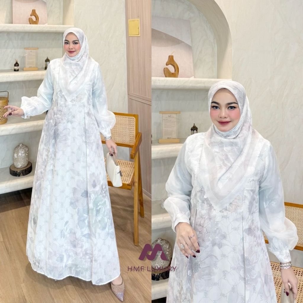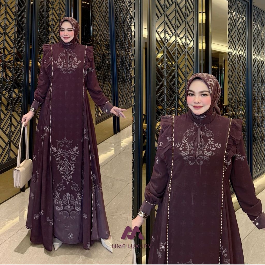 Regita Dress, Megumi Set Hijab & Sahara Set Hijab By HMF Luxury // Gamis Mewah Premium Set Hijab Signature Print HMF Luxury