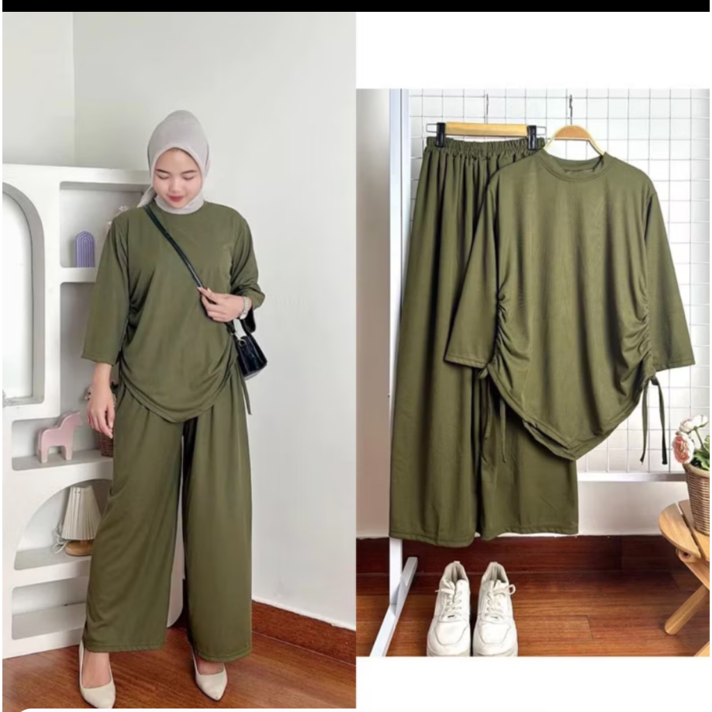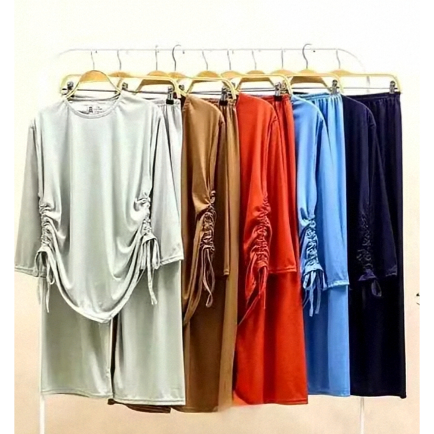 ONESET MOMCHY TALI SERUT BAHAN KNIT SETELAN WANITA