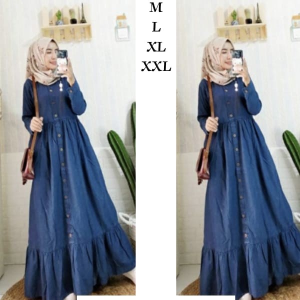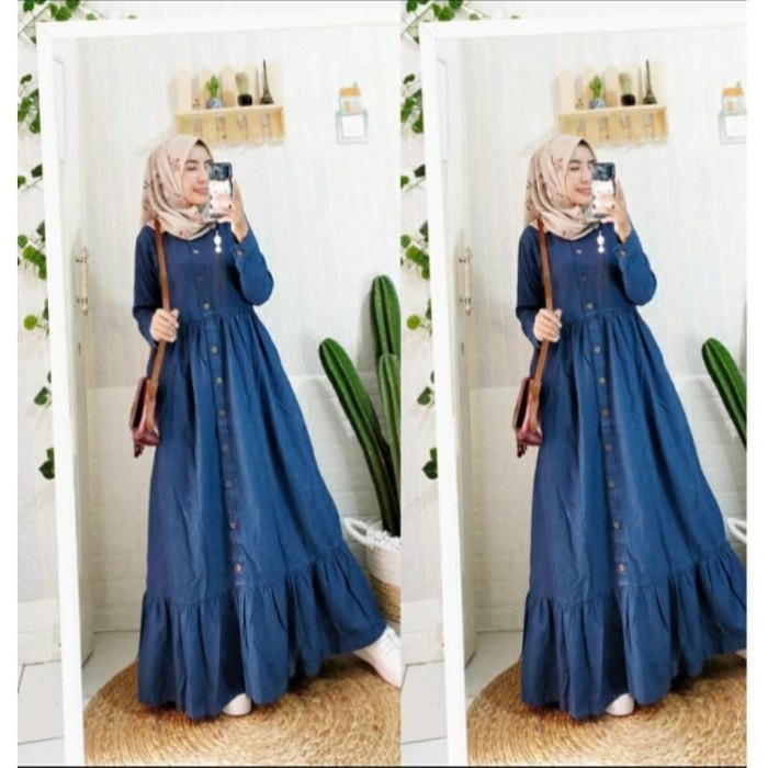 CUCI GUDANG Dress Denim Wanita Jumbo Pakaian Muslim Terbaru Dan Terlaris Kekinian
